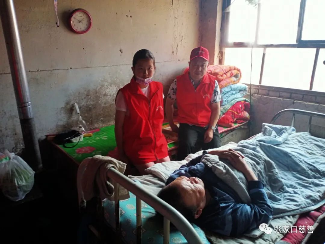 杜海平,男,54岁,2006年因矿区事故砸伤,二次手术医疗事故,瘫痪在床16年,无儿无女,2021年母亲又去世,生活困难。宣化福宁家居分队成立以来,经常关心杜海平的生活,鼓励他战胜各种困难,树立生活信心,用爱心为他撑起一片蓝天。