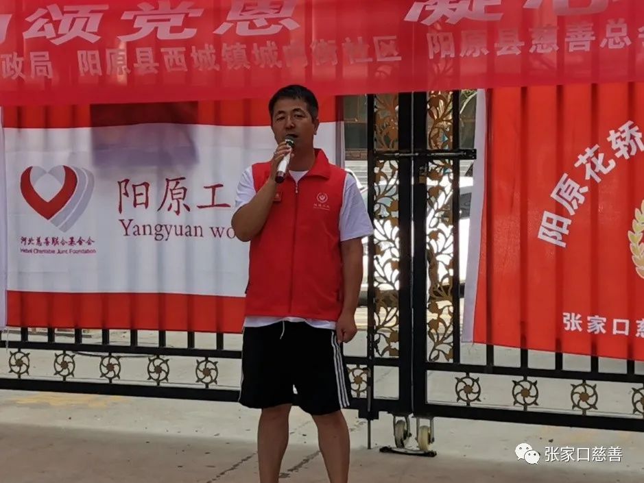 7月9日,阳原花轿文化传媒队在亿嘉福苑小区举行了公益大篷车闲置衣服捐赠活动。一大早队员们纷纷赶来挂条幅,摆放益时光平台给予的各种礼品。八点活动正式开始了,激情舞蹈让整个活动现场进入火热状态。活动由花轿文化传媒队队长助理孙平主持。