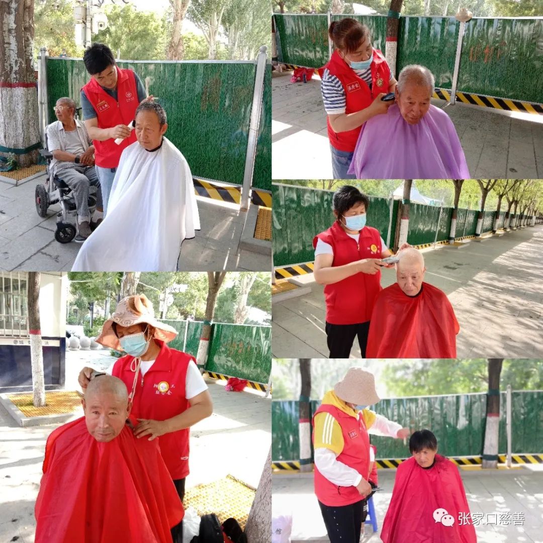此时志愿者王秀兰也正好赶到,她二话没说马上开始帮忙理发,王秀兰大姐人缘好心更好,从家里带来1瓶自做的酵素,说是上星期四有位理发的老人头上有癣,这星期四让老人来拿,头癣用酵素抹过几次就好了。这时过来几位头发挺长路人,王利军上前主动打召呼说:“头发这么长了来理理吧?”人家问要多少钱一人?大家都说不要钱免费的。王利军首先给1位高个子先理,紧接着摄像的刘忠左右看看大家都手上有活,自己就会理光头,光头和拍照是他的特长,别的头他不会,有几位理光头的刘忠给理了。在理发的过程中有几位理光头人是怀安县来这里盖楼房的工人,有位工人头上也有癣,志愿者王秀兰拿来的酵素正好给这位怀安老乡用,王秀兰为这位怀安老乡涂好。热情周到的服务,亲如一家的行动感动了这几位工人,他们为我们无偿理发的志愿活动录了像,并且发到怀安老家要宣传一下,要向阳原县雷锋理发队好好学习学习,并且感谢我们。志愿者和他们说头发长了就选个星期四来广场,我们还为大家理发。