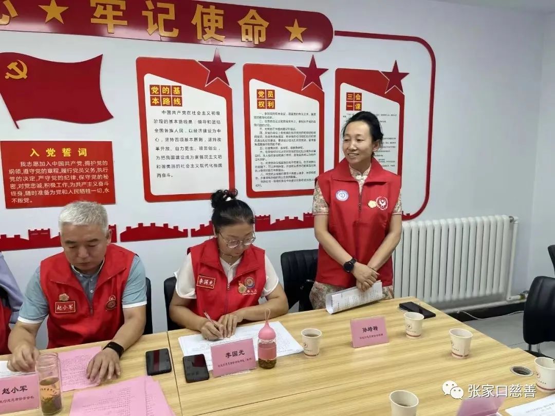 2022年7月14日15:30分,经开区阳光行志愿者协会在市慈善义工联2楼会议室,召开一届四次理事会,会议由赵小军会长主持。应邀参加会议的领导有市慈善义工联党委书记、会长贾庆贺,友好商协会代表有市浙江商会秘书长康长海,市建筑建材业商会秘书长霍万龙,市户外运动协会秘书长张小利,市药膳研究会秘书长乔昱棋。