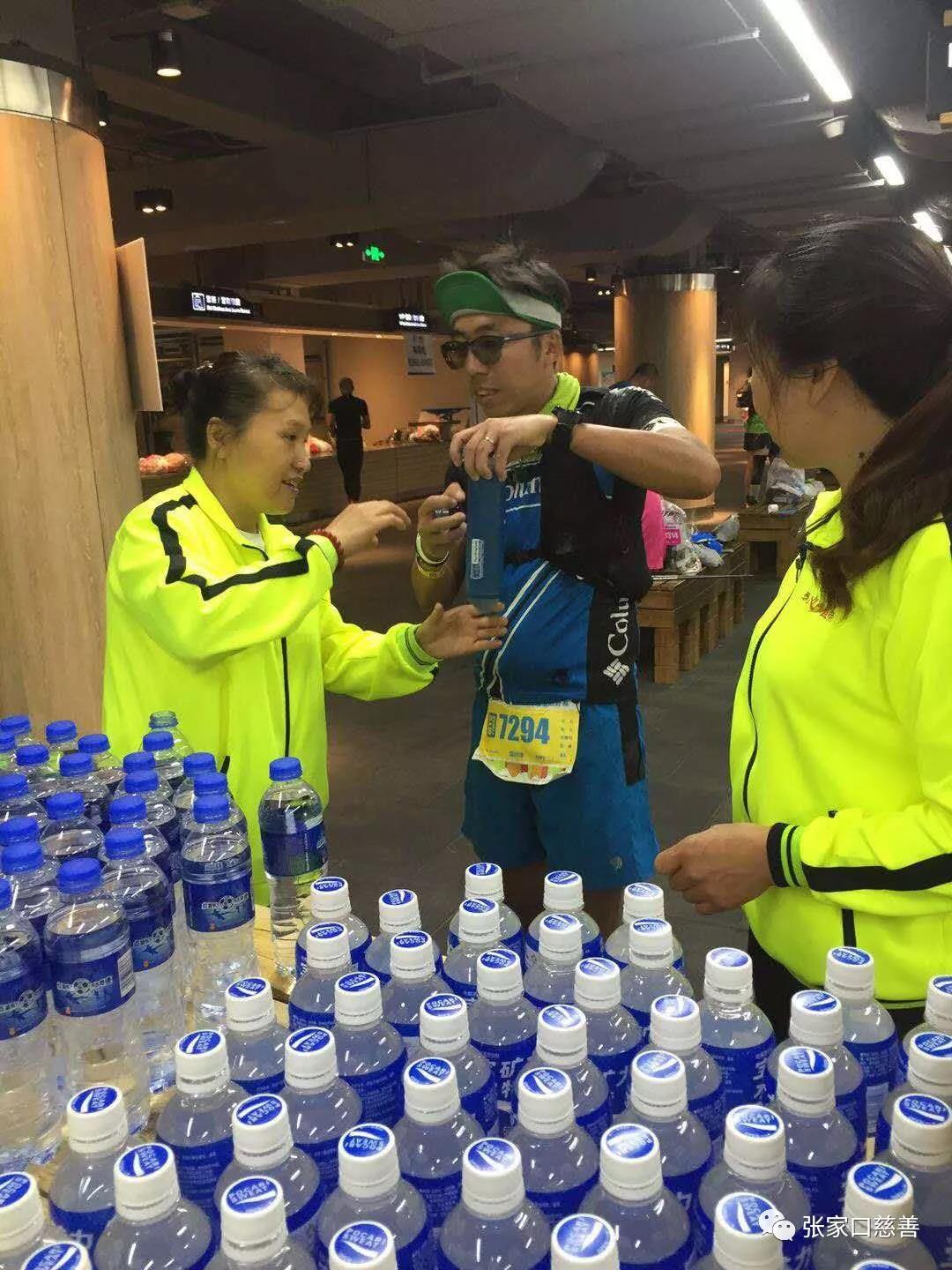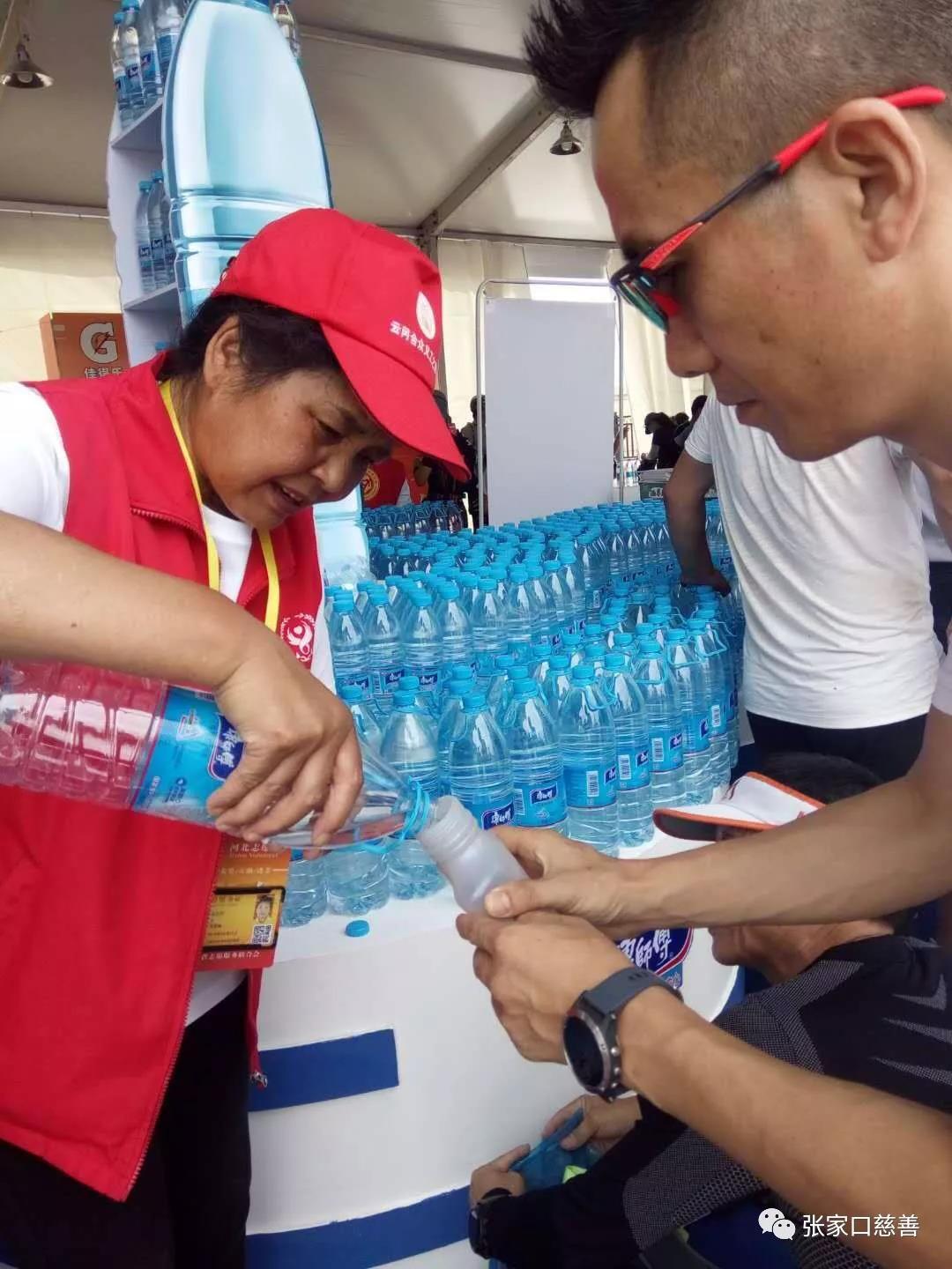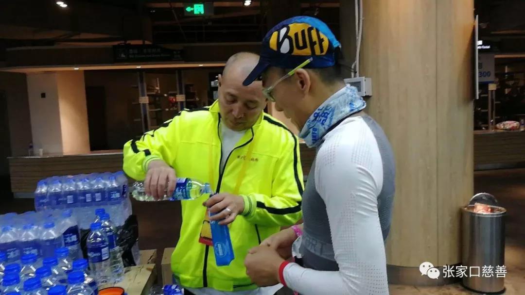 下午2点有位运动员在我们补给台前问我们有剪指甲刀没有,他想修脚指甲,这本不是我们的服务范围,霍焰听说后即刻拿来自己的指甲刀供运动员使用。还有一位男运动员问我们附近有超市没有?我们问他需要什么,他支支吾吾不肯回答,在我们的再三追问下他说他要买卫生巾,当时我们都乐了,哪有这个呀,这时张桂贤老师大声说“我有”,并跑步到自己放包处取来交给运动员,随即运动员到卫生间使用了,并对张老师再三表达谢意,对我们的服务给予高度评价。事后我们得知运动员经过长时间、大运动量腿根部摩擦会疼痛,需要卫生巾阻隔摩擦。