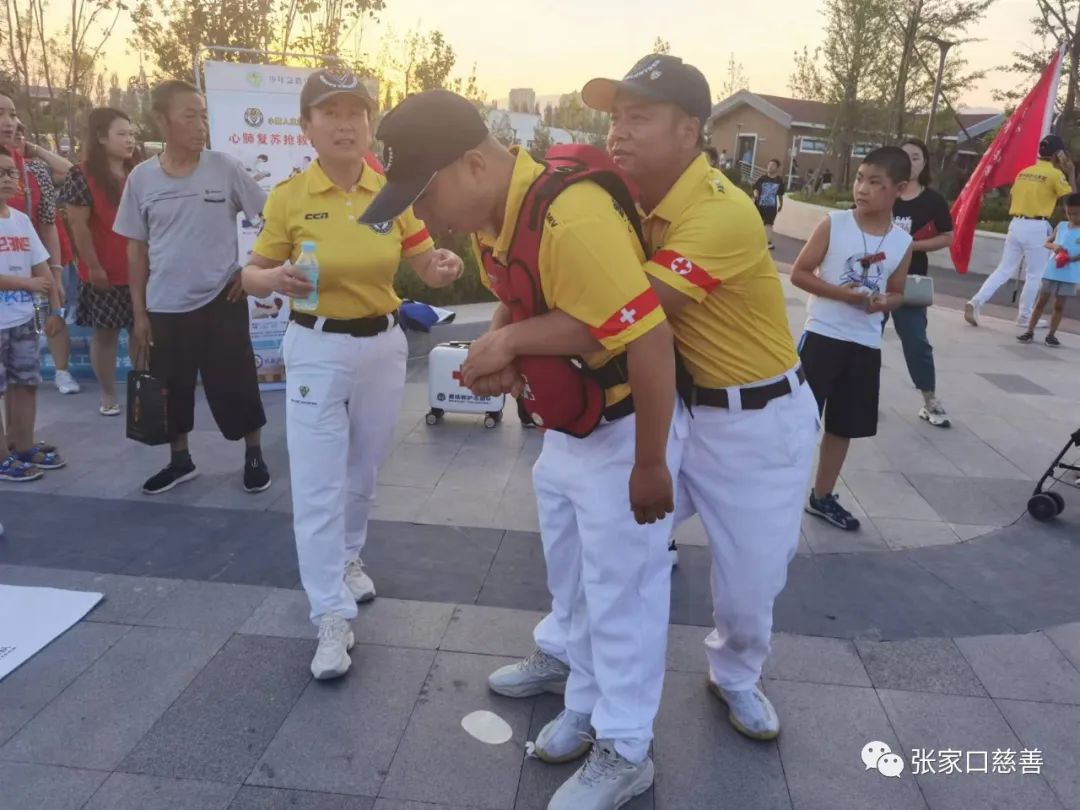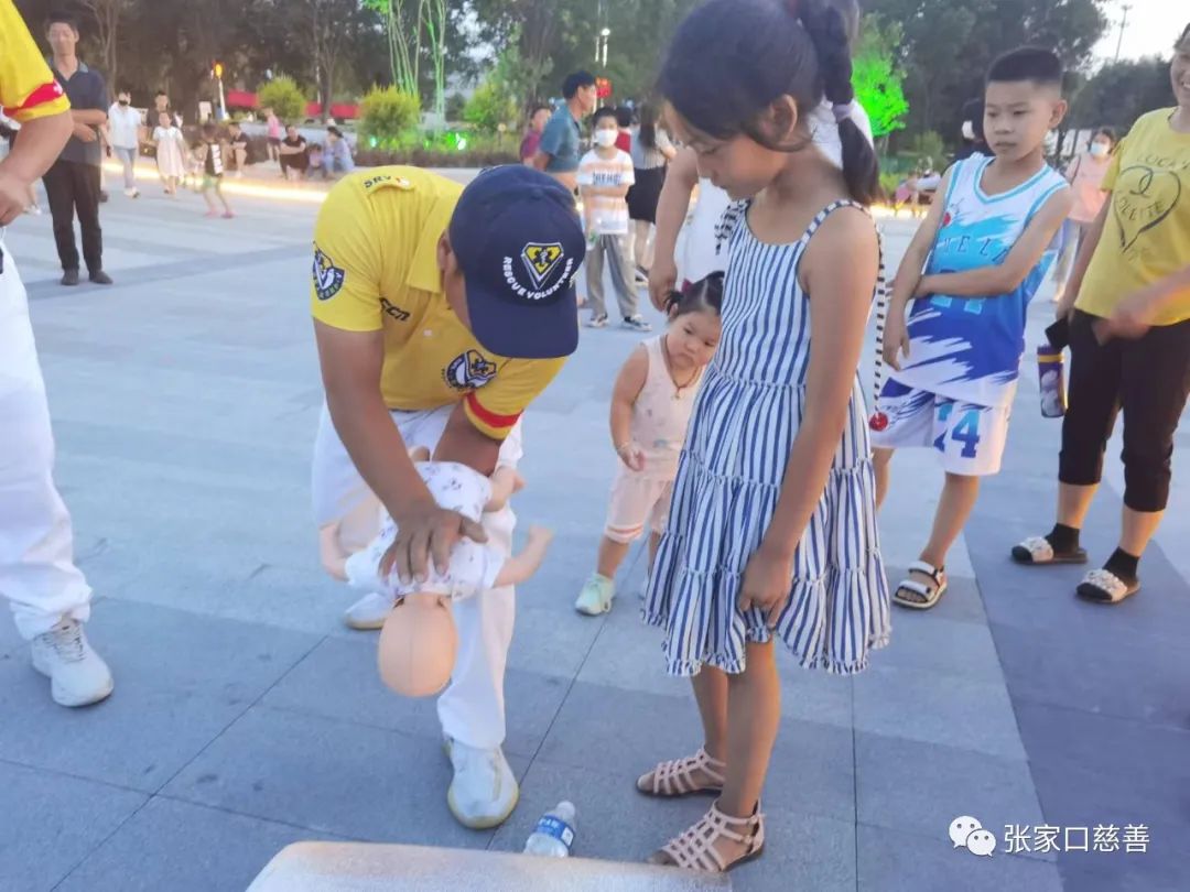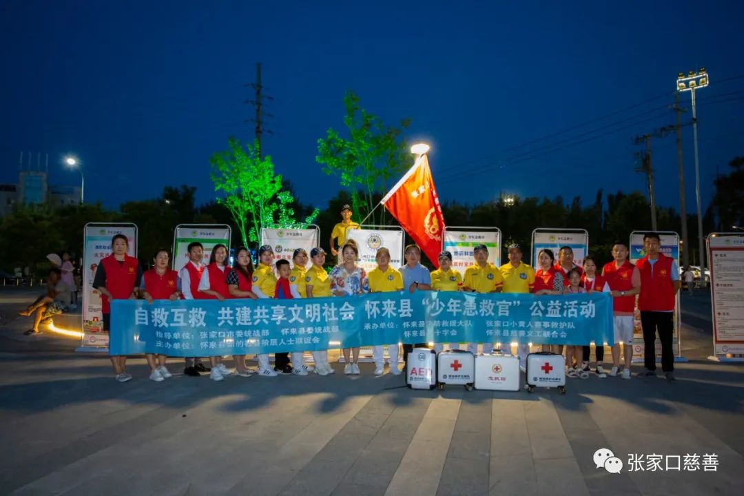 7月22日晚,在怀来县委统战部和新的社会阶层人士联谊会的领导下,怀来县慈善义工联合会和张家口红十字小黄人赛场救护志愿服务队现场在怀来县体育公园开展少年急救官活动,现场教学给孩子们和家长上了一堂有意义的安全教育课。