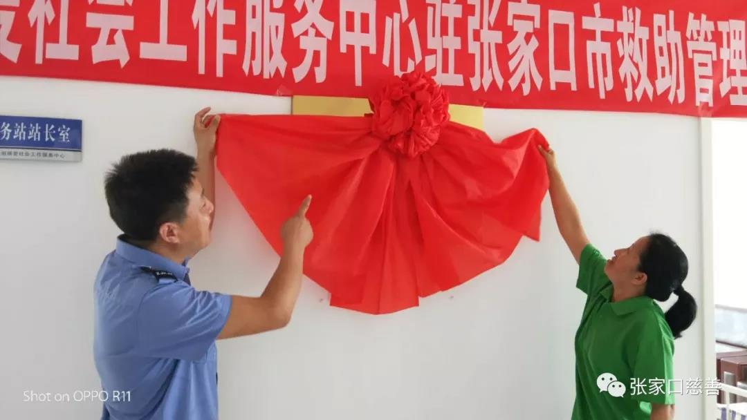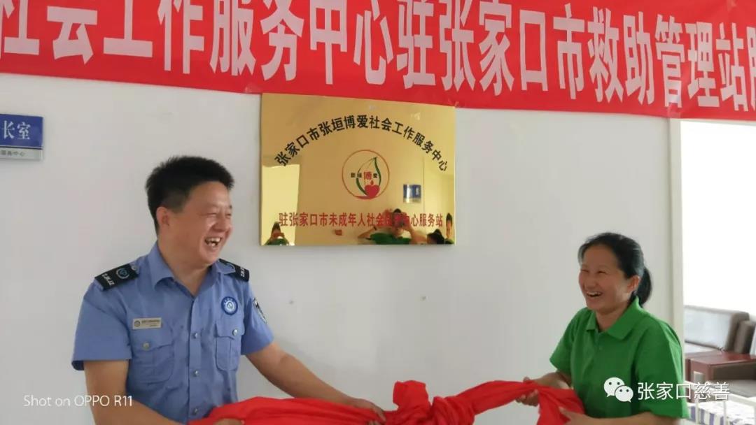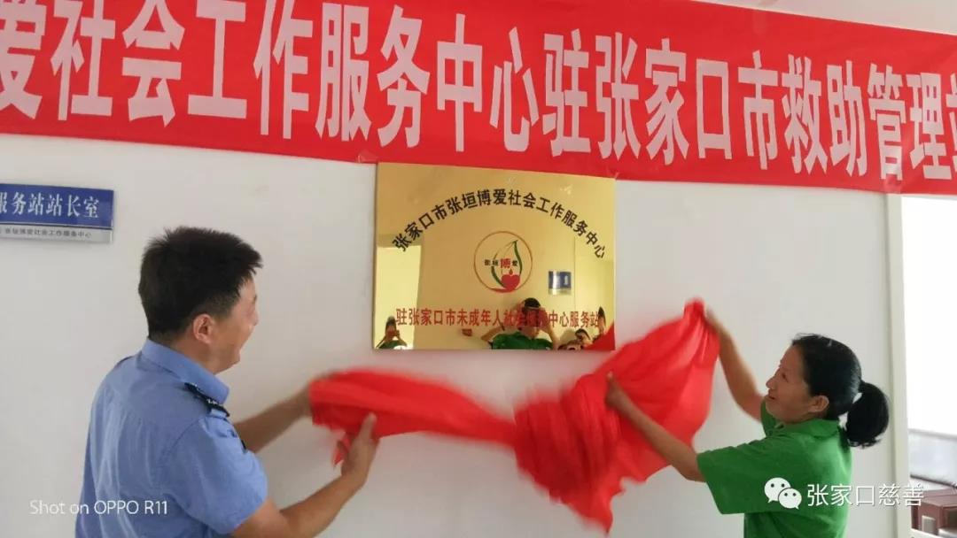 2018年7月18日上午,在张家口市救助管理站未成年保护中心举行了张家口市张垣博爱社会工作服务中心驻“张家口市救助管理站服务站”揭牌仪式。