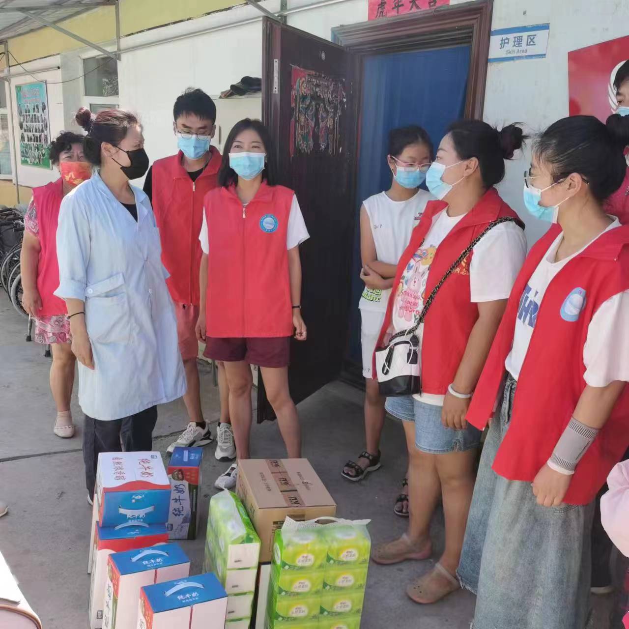 金色的八月流光溢彩,黄丝带志愿者之家百花舞蹈分队的志愿服务活动如期而至。8月5日上午,红红的太阳照耀大地,今天是入夏以来气温最高的一天。空气就像是火烤的一样,人们热得有点儿喘不过气来。就是在这样的天气里,我们黄丝带志愿者百花舞蹈分队的志愿者协同南新村办事处的工作人员以及印台沟社区赵书记一同来到了远大盛和苑幸福苑养老院,来看望这里的老人们。我们带着各种慰问品和生活用品进入了养老院,当我们刚一踏入养老院,老人们就都高高兴兴地走到我们面前,就像小孩子一样,映出笑脸。看到老人们,我们觉得我们的责任更加重大。办事处的负责同志给老人们讲了话,鼓励老人快快乐乐的活好每一天,然后把慰问品发放到老人们手里,和老人们交谈了一会儿,大家才恋恋不舍的离开养老院。