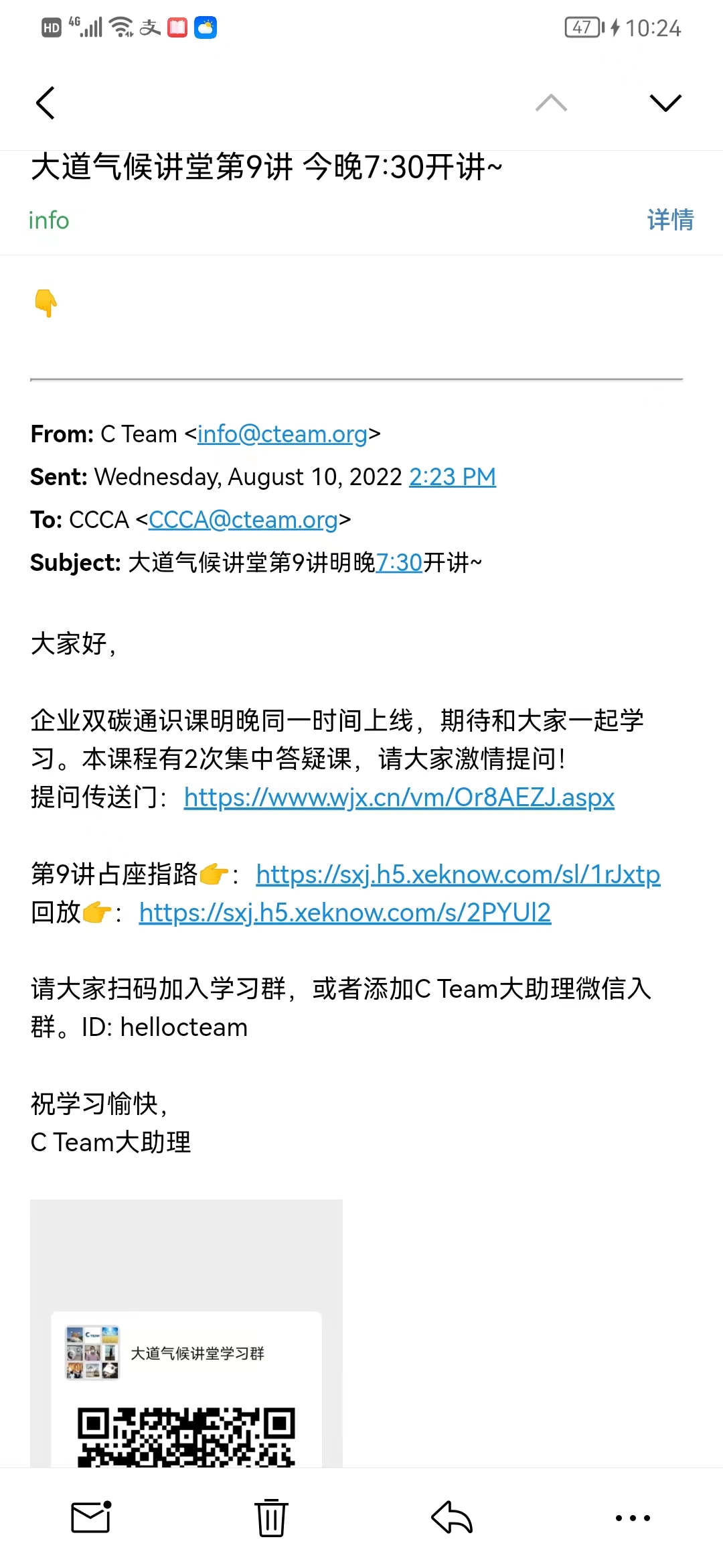2022年8月11日晚7:30—9:30,白鹭环保志愿者服务队携手张垣博爱社会服务中心联合参加线上学习大道气候讲堂,企业双碳通识。本次培训会以“学习专业知识 做生态文明向导”为主题,深入推进中国碳市场自愿减排。本次活动由冯永刚组织,通过微信群、二维码分享,通过视频直播带动团队珍惜来之不易的学习机会。