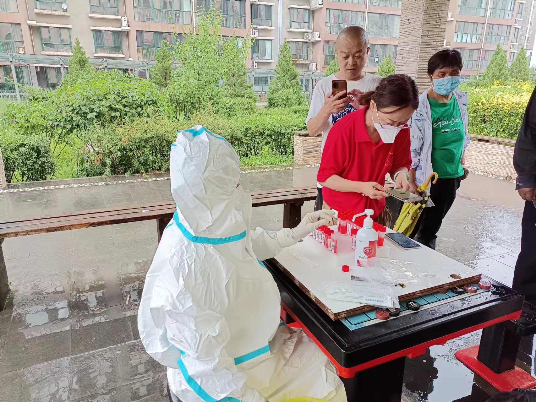 工作一直持续到凌晨才结束。因美居丽景园的居住人数多,时间紧,任务重,第二天清晨志愿者不辞辛苦,忘记劳累,继续开展核酸检测工作,按领导指示,7:30冒雨来到各自岗位,雨中开展核酸检测工作。他们身上淋湿了,鞋子湿透了,顾不上喝一口水,甚至顾不上去厕所,一直坚持到中午接近一点才算松了口气。