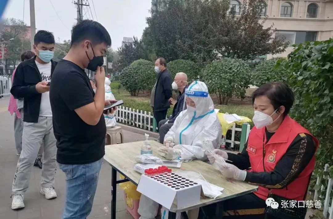 在国庆节这天凌晨6点半福德仁爱公益队党支部书记冀惠仁,接到菜园街社区闫书记的电话,按照市里通知:10月1日早上7奌半开始全市要连续三天做核检检测,需求福德仁爱公益队全力协助社区进行核酸检测工作。疫情就是命令,党支部书记冀惠仁接到通知后,马上联系福德仁爱公益队队长毛艳芳及有关队员。同时大家分头行动,从不同地点第一时间赶到社区。由党支部书记冀惠仁,队长毛艳芳,队员章凤礼赶到菜园街社区,不到八点分别赶到小区各个核酸检测点,投入到了核酸检测维护工作中。