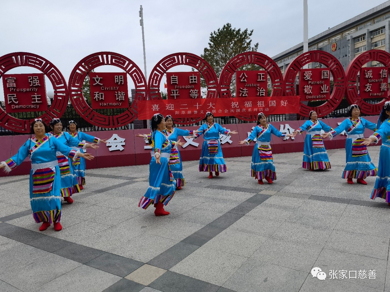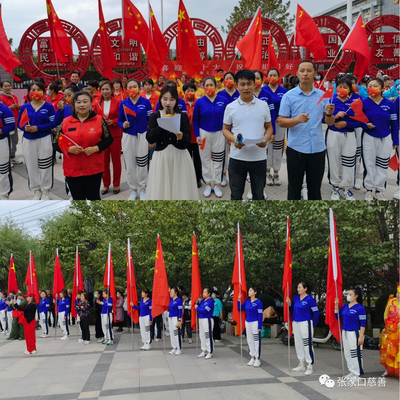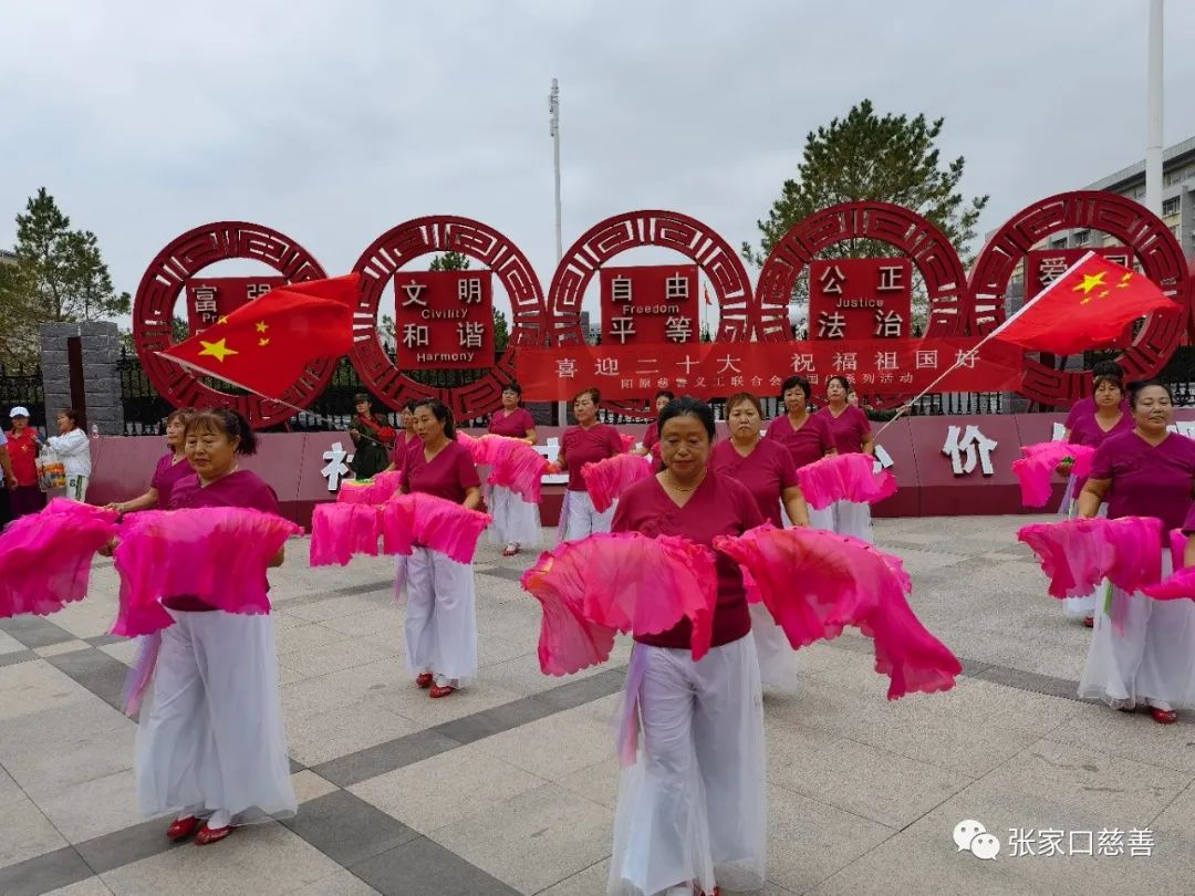 花轿文化传媒队表演的大型秧歌《祖国你好》、《中华全家福》,泥河湾广场舞蹈队《领行新时代》、飞越梦想爱心团队舞蹈《我的国》、《吉祥欢歌》、《幸福中国一起走》,传统文化队的歌伴舞《国家》,鲍玉珂、张志利的诗朗诵《喜迎二十大》、《国庆感怀》,韩玉启、王海霞、温娜娜、李玉芬演唱的《今天是你的生日》、《最亲的人》、《爱在天地间》、《我的祖国》歌曲等,个个节目催人奋进,精彩纷呈。活动在歌曲《我和我的祖国》歌声中圆满结束。本次活动充分展示了阳慈联爱心平台团结向上的精神风貌,展现了平台各团队团结合作风采,对今后的发展必将产生巨大的影响。撰稿:刘静审核:马雁飞来源:阳原慈善义工联合会