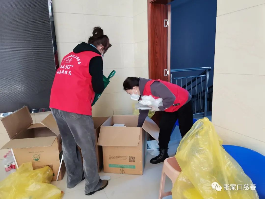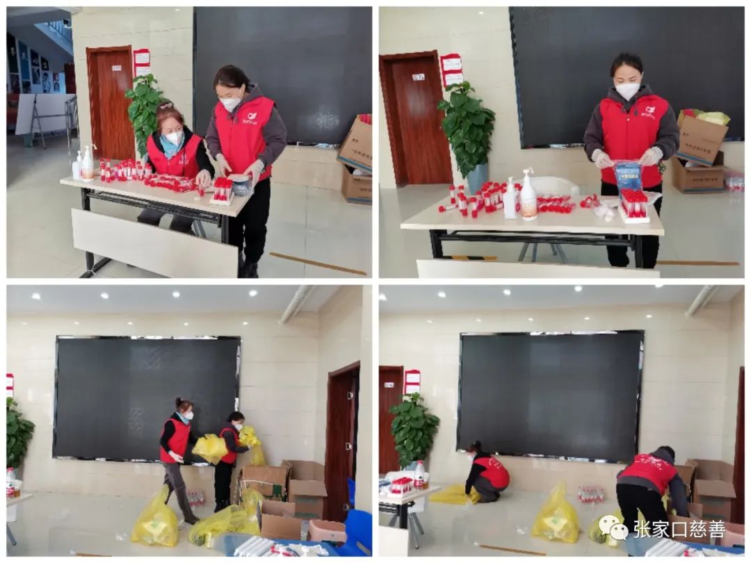 2022年10月4日,张家口市继续进行全员核酸检测工作,春风助残义工队党支部书记刘俊琴带领志愿者张福英,马桂和,张晓玲,莘海玲等人负责整理疫情检测储备物资。