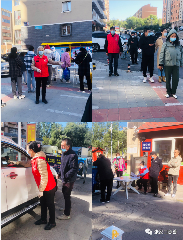 3号乌云密布,气温骤降,寒风瑟瑟,五到六级西北风时刻袭击着志愿者们,大家冻手冻脚但不惧严寒,仍然坚守在第一线,搀扶老人,保护儿童,为居民操作手机健康码,工作紧张而有序进行。社区书记王晓兰亲自挂帅,工作人员齐出动,但还是忙不过来人手很紧缺,冀生梅,马世中,崔荣霞又到大门口值勤排查出入车辆必须有24小时核酸检测结果和单位证明,天下公益一家亲,我们与统计局崔杰,塞北林场邱贵富等志愿者一起坚守排查车辆出入大门,坚决贯彻政府号召,认真落实执行管控,着实排查每一个出行车辆行