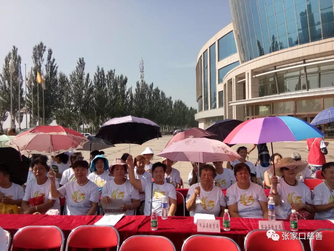 2018年8月1日上午九点,经开区威风锣鼓义工队的老师们在队长张凤英的带领下,来到国际会展中心参加张家口尚文读书节开幕仪式。