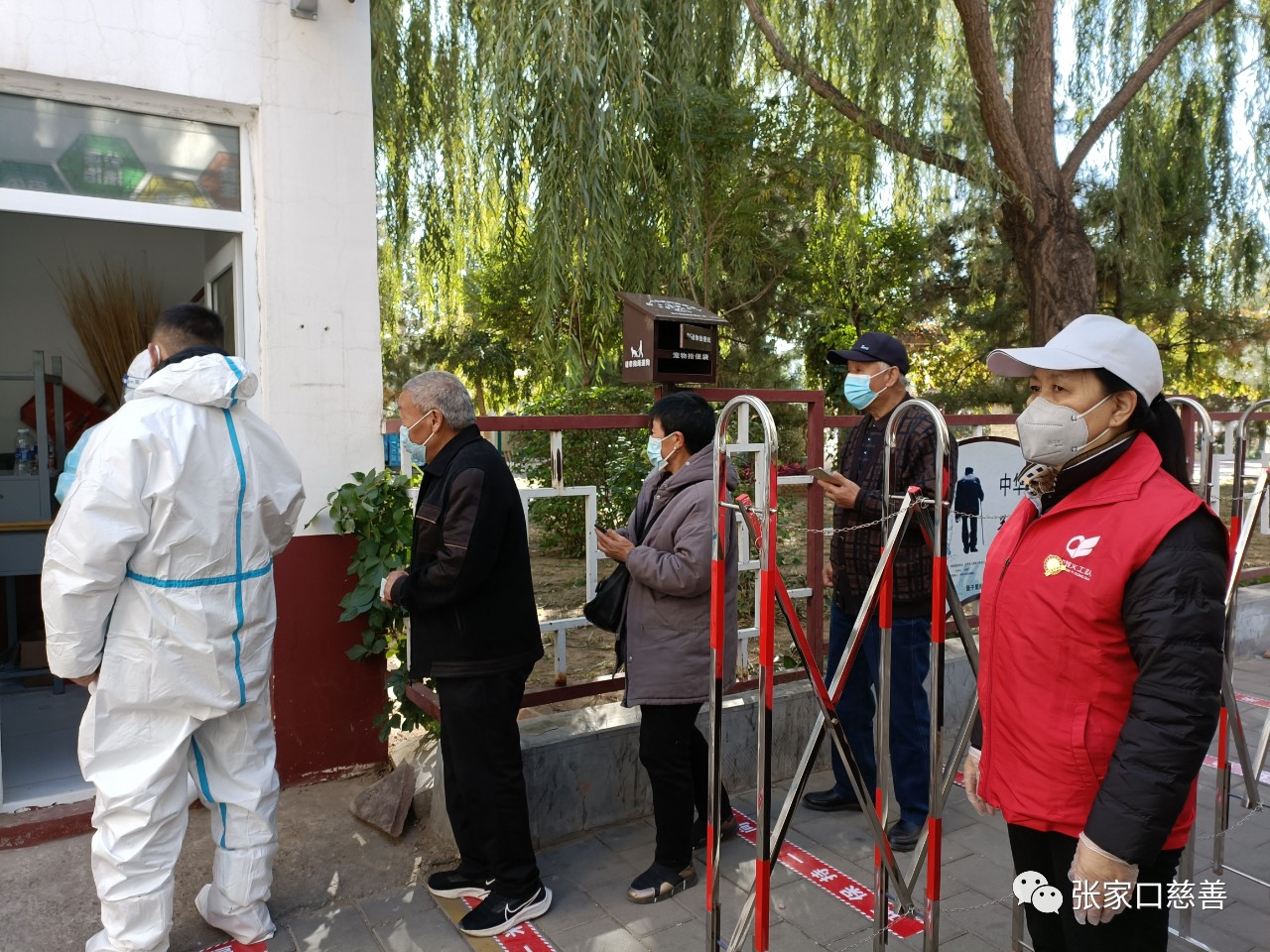 张家口市新型冠状病毒患者数量与日俱增,给疫情防控工作带来沉重的压力,疫情无情人有情,2022年10月10日,在春风助残义工队党支部书记刘俊琴的指导下,志愿者任义福,马桂和、张福英、莘海玲,王飞、孙艳丽、李信淳、安富梅、武子涵、卢瑞芳等人分别在东宁街社区、奥林星城五期茶榆路社区、堡子里社区、桥东区汉桥街26号军粮库家属院、明德南白山南社区等地展开核酸检测