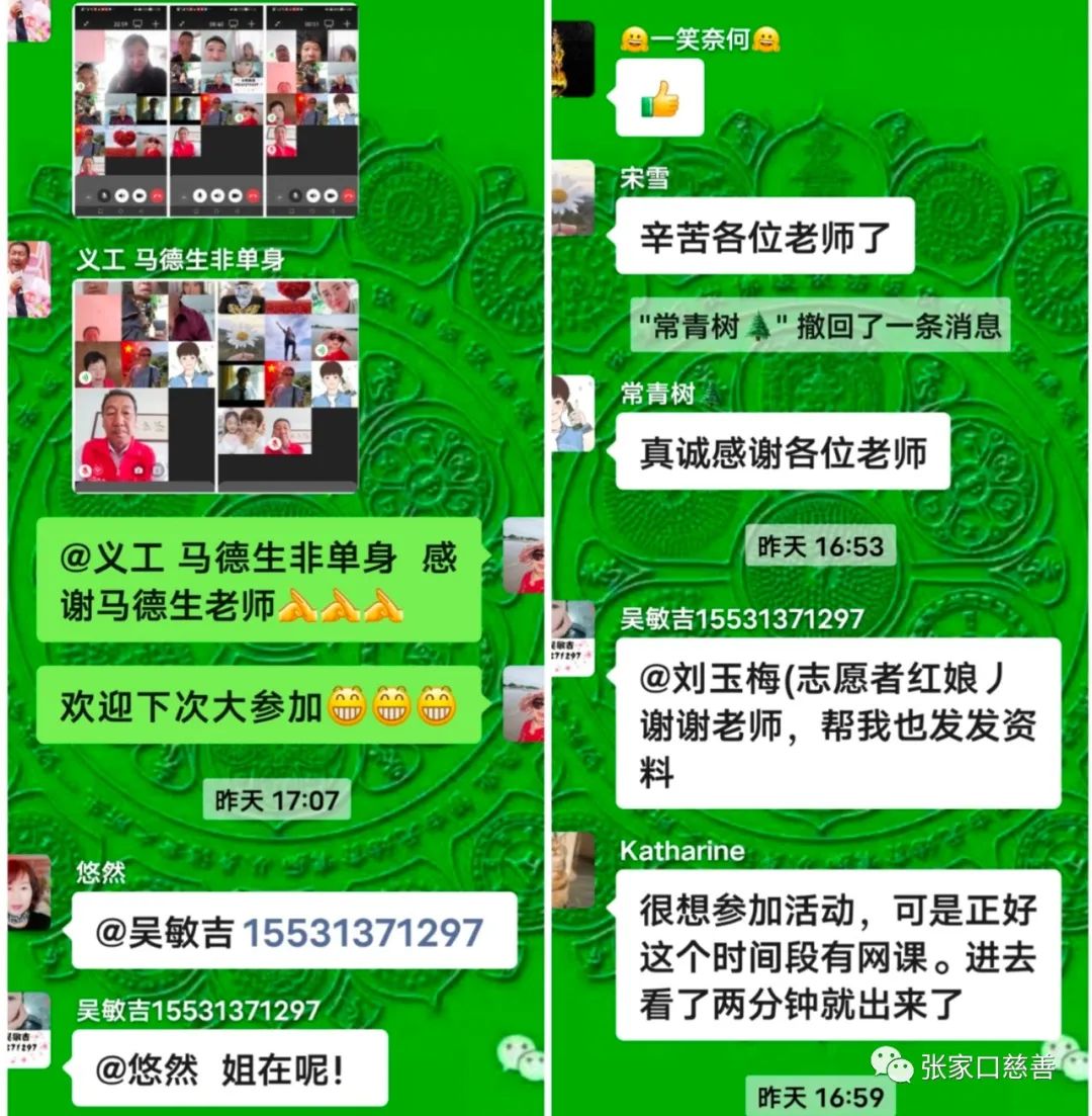活动结束后,微信群里反映强烈,有的表示感谢,有的表示没有来得及上线,以后要积极参加。看来这种方式得到了多数人的认可和欢迎,而且更适合以当下疫情期间足不出户还能相互认识的方式。这次活动得到了很多人的大力支持,尤其是群里的各位老师们,公益红娘们在会前积极发动相关人员参加活动。在此再次衷心感谢大家的支持和帮助才得以会议圆满成功。北师乐缘牵手队要再接再厉不辜负牵手群的家人们的希望,认真搞好每一场活动。为解决当今大龄单身青年的实际问题尽一份绵薄之力,最后 祝福单身青年早日找到理想伴侣,喜结良缘幸福美满。撰稿: 刘玉梅摄影: 马德生审核: 陶京峰来源: 北师乐缘义工之家