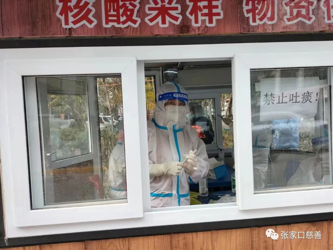从1号以来,张家口疫情形势不容乐观,不间断的有小区被封控,造成了人心惶惶,足不出户的现象。疫情无情人有情,全市人民一条心,我们志愿者更是积极投入到抗疫一线,为社区,为百姓平安做出了积极的贡献。26号晚上八点,接到了新华街办事处的求援电话,天河桐盛小区疫情严重,急需要志愿者的援助,尤其是扫码人员。李队接到电话,马上联系队员,有张建花,殷果花,刘月芝,陶雅丽,一行五人加入了做核酸的志愿服务。陶雅丽是一名护士,但是没有做过检测核酸的工作,在李队长的鼓励下,毅然决然接受了做核酸采样这项工作。因为是中高风险地段,心里不免有些打鼓,忐忑不安。殷果花,刘月芝从来没有扫过码,急社区所急,便现场学习,欣然接受了扫码的工作。张建花,李尚林负责维护秩序,运送物资的工作,从早上七点一直到下午三点,水不能喝,饭不能吃,卫生间不能去,汗流浃背,坚持到最后一刻。8个小时的工作下来,浑身疼痛,无法表达。不经其镜,不知感受,在此,感谢抗疫期间的大白和爱心付出的志愿者。