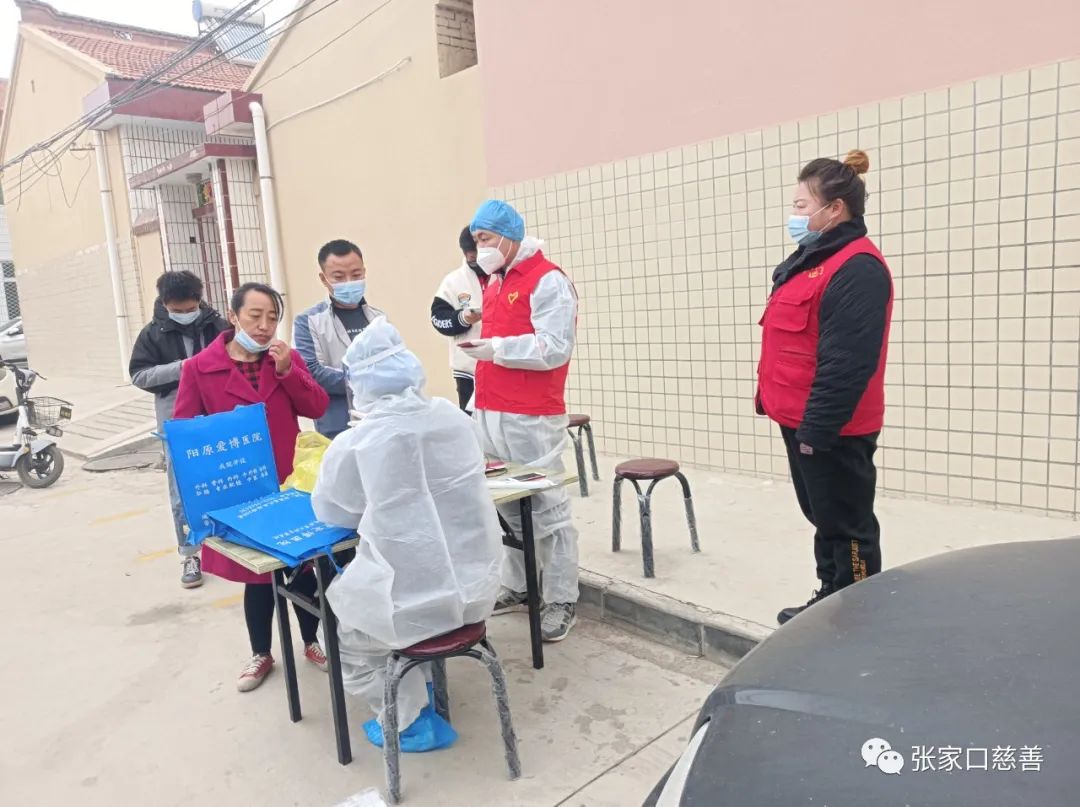 阳原县爱国拥军联合会志愿者参与了第46次全员核酸检测在田广阔会长的安排下,来到京源小区、工商小区、房产小区、土地小区、计生小区、幸福路囗北、幸福路囗南、快递街核酸检测点开展工作。副会长杨红负责几个小区和扫码录入信息,志愿者韩越到几个小区每栋楼下,用喇叭喊话通知居民做核酸,生怕居民们误了全员核酸检测,过段时间去喊一次,直到结束时间,在平房区坚守着自己的岗位的志愿者,为在平房区的居民们和路过的人做核酸检测,爱国拥军联合会的田会长到每一个检测点察看核酸检测情况和志愿者的工作情况。看到做核酸的居民排着长队,保持着一米距离,没有一个不戴口罩的。田会长面带笑容向志愿者问好,大家辛苦了,今天看到居民们的表现,就是对我们志愿防疫服务的回报。
