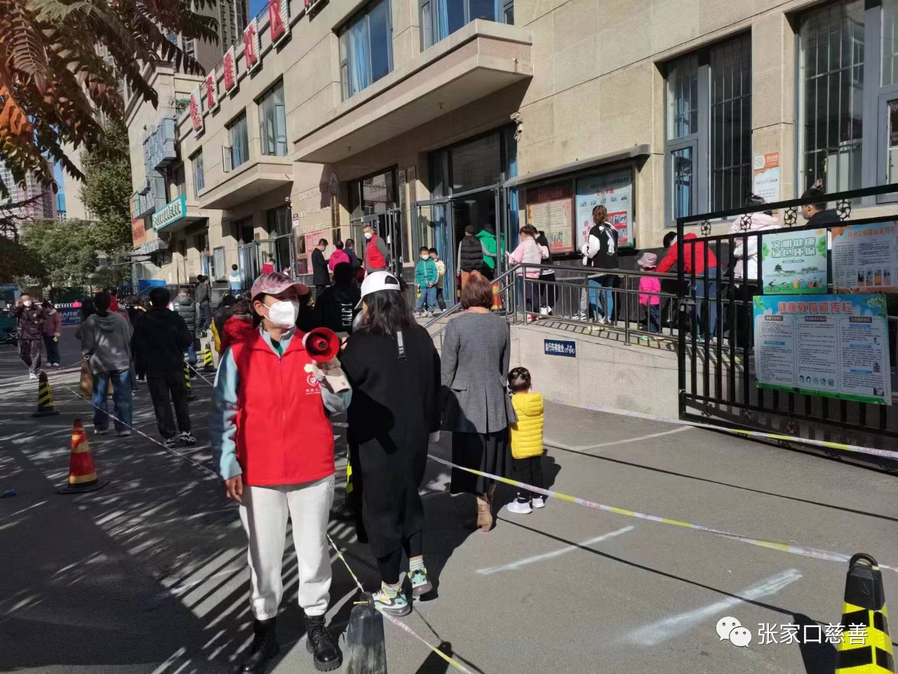 张建花维持秩序,殷果花扫码