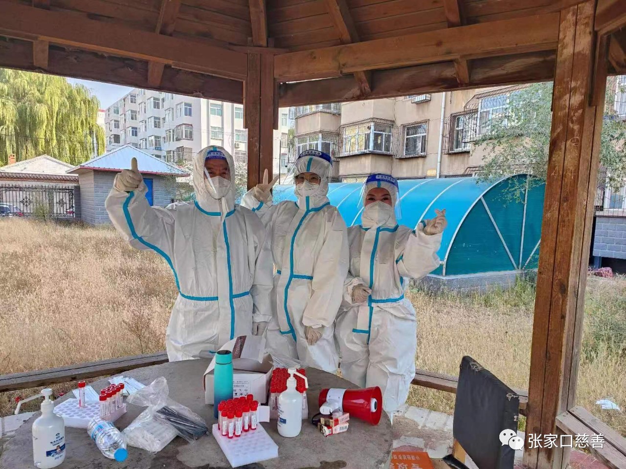 在抗疫的这四十多天里,我见过志愿者们为了坚守在岗位上,吃饭在冷风中;也见过穿防护服的“大白”们为了节省一套医疗资源,一天都不敢喝一口水,就怕上厕所;我见过医护人员在核酸间隙坐在小区的长椅上睡着了;我见过执勤人员在寒风凛冽的夜晚,彻夜不眠的守护在小区门口。他们是谁的儿女,是谁的丈夫, 是谁的妻子,又是谁的父母,不是为了保护我们的国家,保卫我们的家园,谁又舍得让他们受这样的苦累。在最冷的那几天里,站在零下温度的户外,做核酸的医护人员要不停的消毒,双手冻的红肿没有知觉。虽然不能得到所有人的理解与支持,但是也会有很多热心的群众给我们送来暖暖的热水。这无疑给我们的工作也增加了不少的动力。