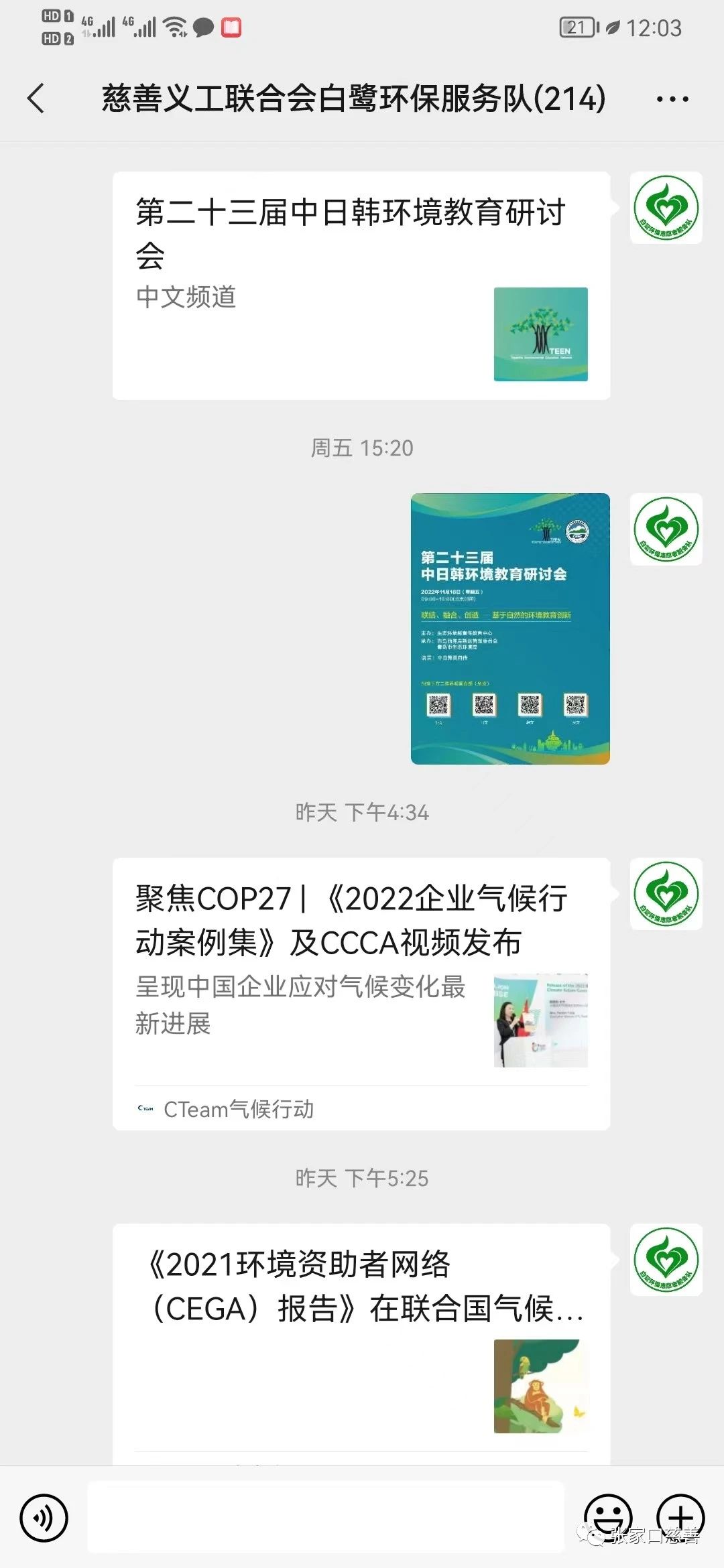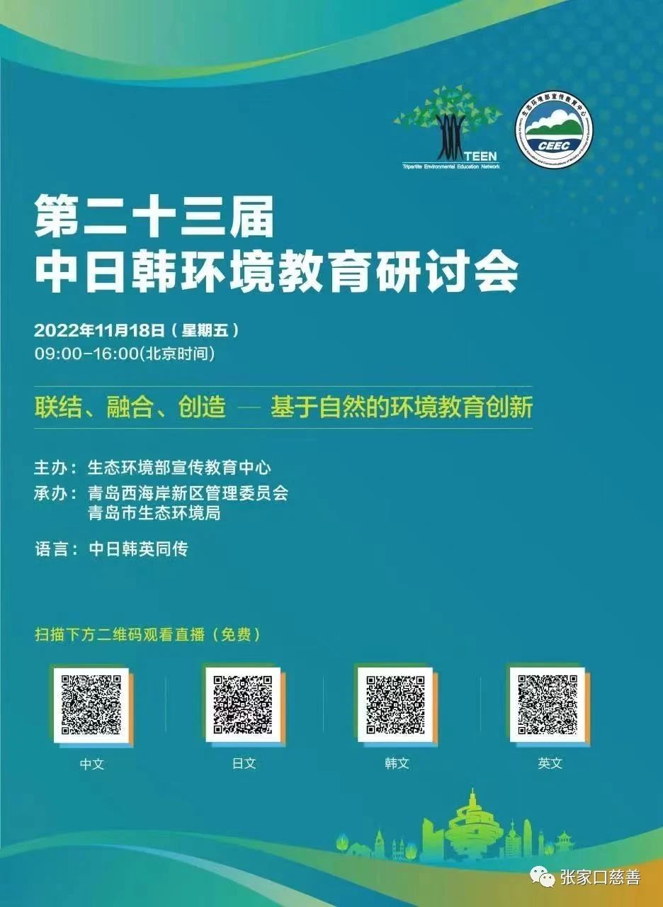 2022年11月18日,白鹭环保志愿者服务队与中、日、韩三国热爱环境教育的社会各界人士相聚云端,参加了“第二十三届中、日、韩环境教育研讨会”,还通过微信群、朋友圈邀请更多热爱环境教育的社会各界人士参加。本次研讨会由中国生态环境部宣传教育中心主办,山东青岛西海岸新区管委会、青岛生态环境局协办,得到了中、日、韩三国的大力支持,共同创造网络成立,首次线上举办。