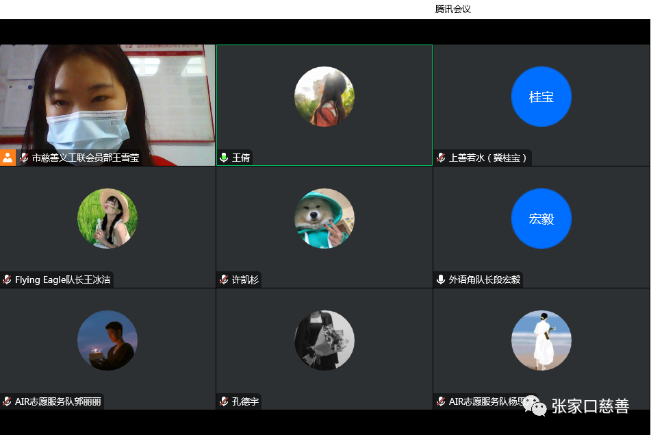 2022年12月27日上午11:00,第56届轮值委员会第1次会议以线上会议的形式在腾讯会议召开。参加会议的有第56届轮值会长王倩,张家口外语角服务队队长段宏毅,WarmWings英语志愿服务队队长徐凯杉,张家口大学生AIR志愿者服务队队长杨思凡,"FlyingEagle"志愿者团队队长王冰洁,张家口慈善义工联合会党委副书记冀桂宝,会议由轮值会长王倩主持并进行开场讲话。