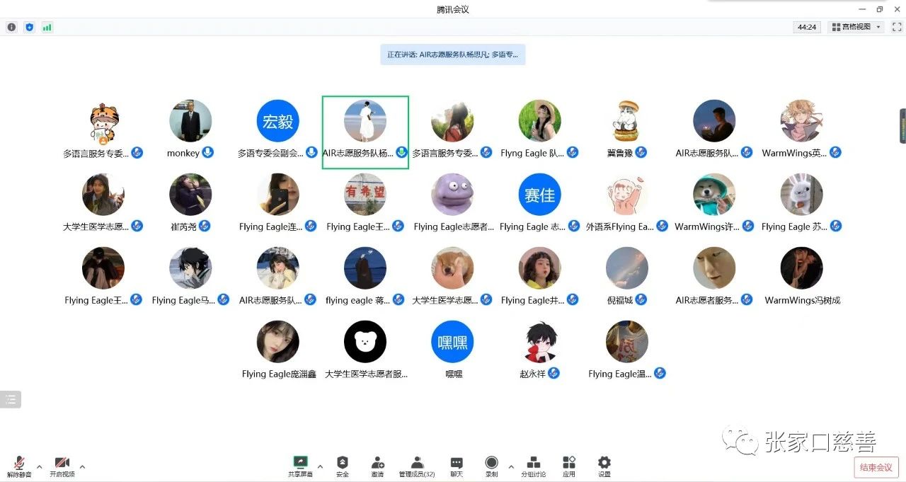 2022年12月28日晚8点,张家口慈善义工联合会多语言服务专委会于腾讯会议APP召开的以“张家口慈善义工联合会多语言服务专委会2022年度总结会”为主题的会议圆满结束。参加本次总结会的有张家口慈善义工联合会臧盛环副会长、多语言服务专委会王倩会长、段宏毅副会长、侯宝存名誉会长、冀鲁豫秘书长和谢东财执行秘书长以及各志愿服务队伍主要负责人,本次会议由段宏毅副会长主持。