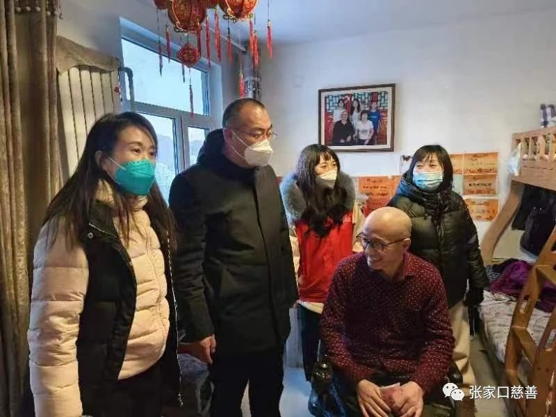 春节将至,年味渐浓1月17号,暖冬行动系列活动,由河北省残疾人联合会河北省肢残人协会,张家口市残疾人联合会,张家口市肢残人协会携手春风助残义工队为残障困难家庭送去慰问金和慰问品。省肢残人协会刘来喜主席秘书长谷晓燕张家口肢残人协会罗兴主席,副主席兼秘书长刘俊琴携手志愿者吴亚娟,马妍,王瑛琦一同前往的有张家口日报媒体记者等人一行来到张家口桥西区困难残疾人闫志军家中进行慰问,并为他带去,米,面,油,被褥,和现金红包。闫志军是低保贫困户高位截瘫一级残,闫志军是张家口肢残人协会和春风助残义工队一直帮扶对象,罗兴主席详细询问了近期的家庭情况和他们身体状况,得知他的三个孩子都学习优秀,罗主席高兴的说,好好供孩子上学,有啥困难及时的和我们反应,并鼓励孩子们要继续努力学习,用知识改变命运。