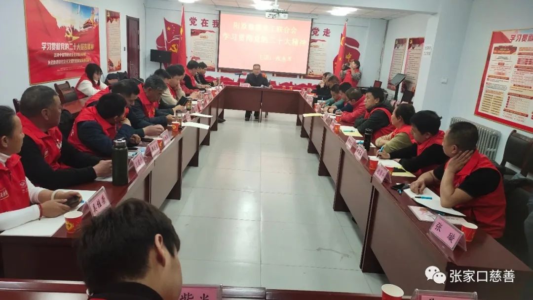 会议由张家口慈善义工联合会宣传委员、第十六党支部书记、阳慈联会长刘立东主持。他说,为进一步提升广大志愿者的政治素质和理论素养,根据上级党委通知要求,要把学习贯彻党的二十大精神贯穿到各项工作全过程,今天我们有幸邀请到知名讲师张永军给我们授课,张老师具有深厚的理论功底和丰富的宣讲经验,在百忙中第三次来阳慈联授课,让我们感到十分荣幸!