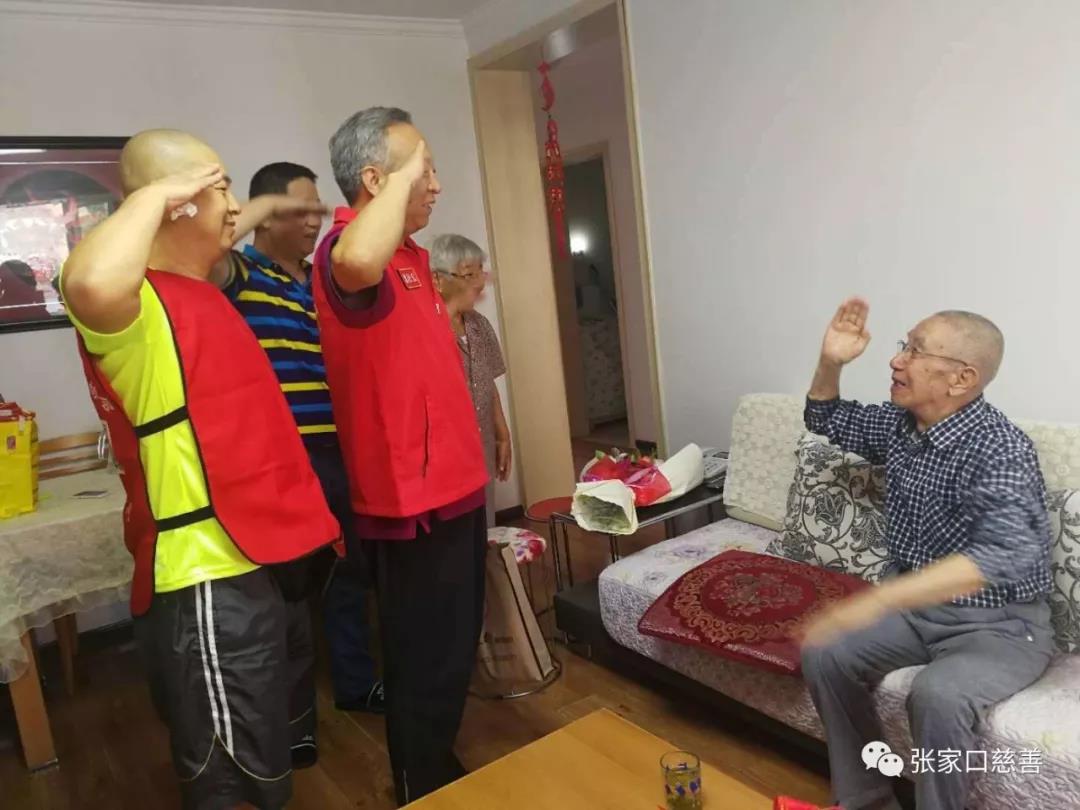 2018年8月19日,张家口慈善义工联阳光行关注历史团队,在团队副会长,张家口五环体育中心刘大鹏的组织带领下,开启了团队第四十一站的慰问活动,张家口宏康中医院院长陈金成,满堂红总经理韩晓燕,团队书记冀桂宝,刘欣宇,李蓉萍,张丽丽,郭永刚,以及张家口第一中学的学生韩书缘等三名同学,带着团队所有志愿者及广大关爱功勋老兵人士的心愿,一起参加了此次的慰问活动。