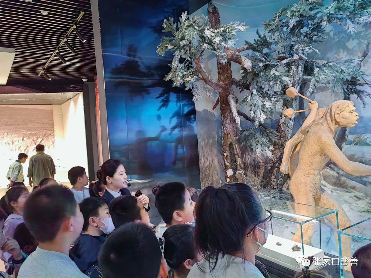 首先,我们来到二楼展厅,大家分别参观了《东方人类的故乡—张家口古代历史专题陈列》和《红色张垣—张家口近代革命历史专题陈列》两个展厅。解说员详细讲解了的历史发展历程,从“泥河湾遗址”、“人类的进化”到“陶器”的演变......大家仔细地聆听了文物背后的故事,孩子们在解说员的讲解下,认真而兴奋地参观着馆内布展陈列的每一件珍贵文物,感受着张家口这座具有悠久的人文历史和灿烂文化魅力的城市。参观完二楼的展厅,大家继而来到三楼展厅,《神京屏翰 畿辅重地—北京与张家口的古往今来》和《万里茶叶道 亚欧商贸城—张家口贸易历史的国际化》两个专题展览。孩子们驻足在VR情景再现展台前,沉浸式体验历史文化,了解了张家口的商贸历史以及与北京的古往今来。