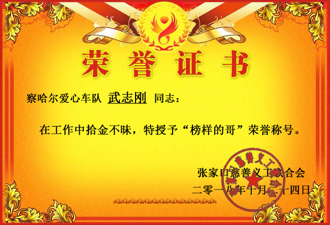 2018年10月23日晚,张家口慈善义工联合会察哈尔爱心车队,T0099武志刚师傅捡到苹果手机一部和手包一个,内有现金一千多元以及各种银行卡和证件。当时乘客坐在后座武师傅发现后及时上报车队联系乘客,乘客是一位女乘客,来自秦皇岛,着急办事把手机和手包掉车上了。乘客特别感谢武师傅,说:爱心车队的师傅们太好了,感受到了张市人民的热情好客以及张市的哥的优质服务和崇高品质,做为一个外地乘客感受到了张市人民温暖,武师傅多次捡拾贵重物品和手机都及时归还了乘客是一个充满正能量的好的哥。