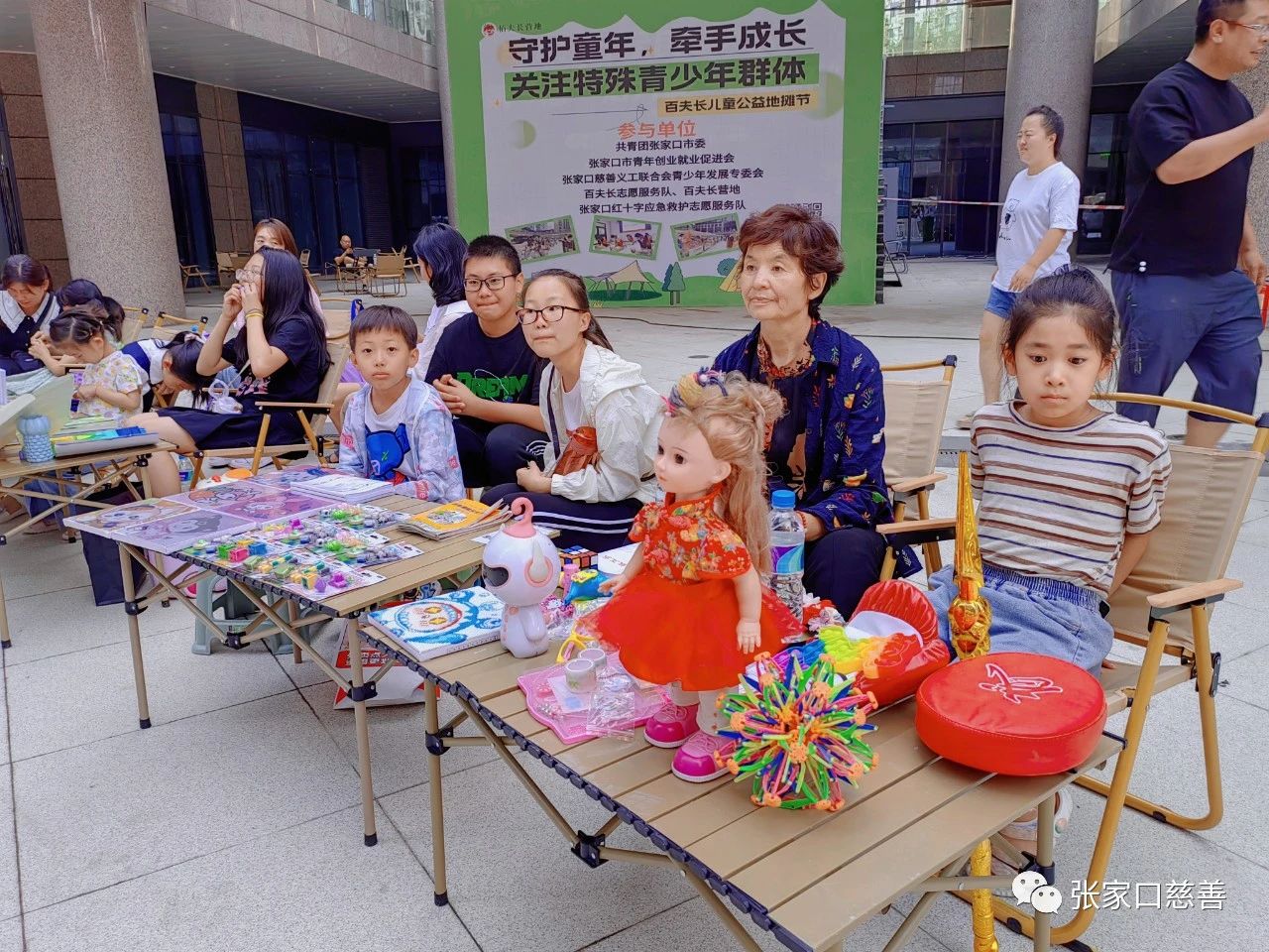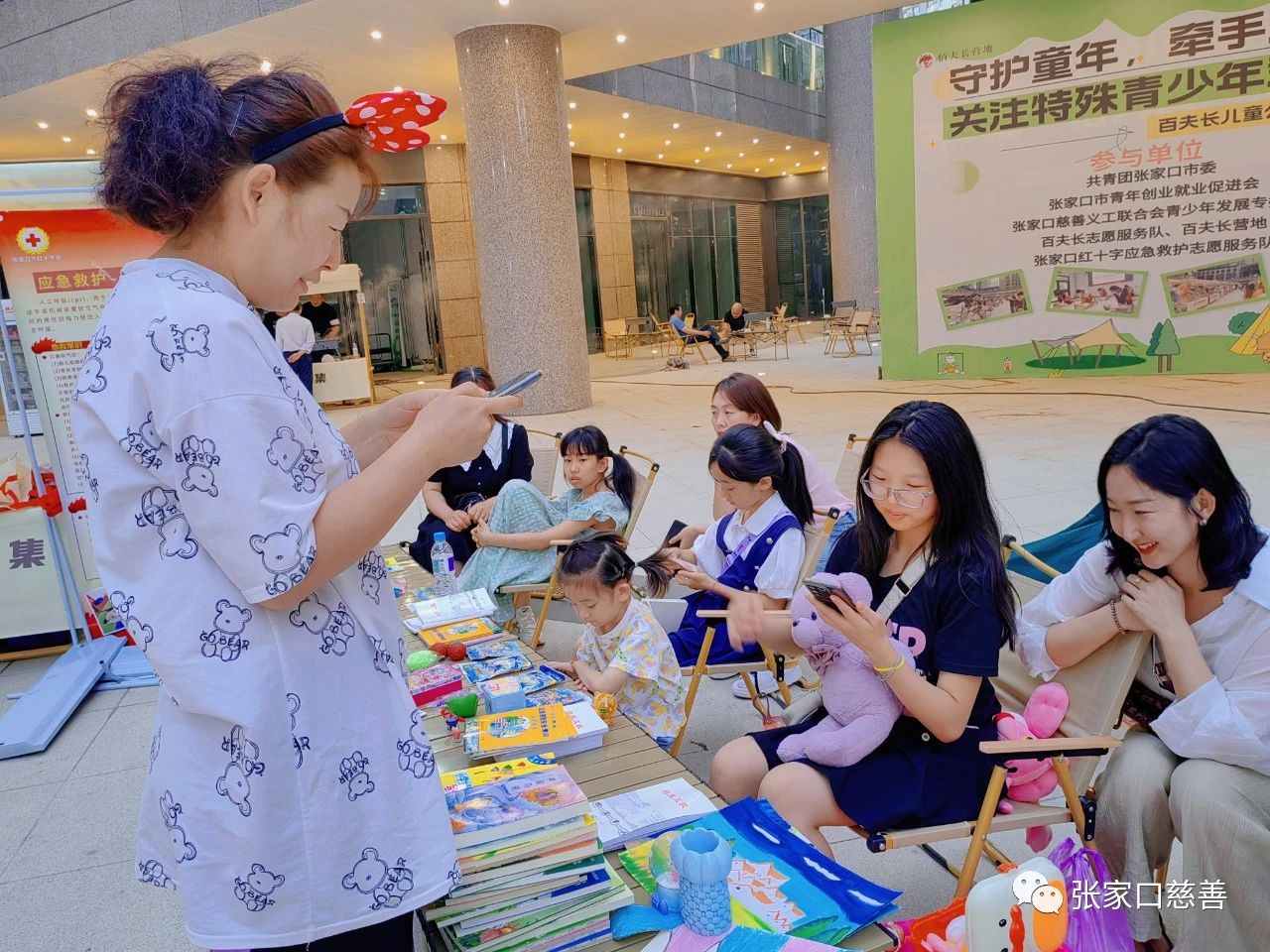 为引导青少年在真实生活场景中学习和体验,通过摆摊了解财商中的基本概念,通过与陌生人沟通和交流,洞察现实生活中的人和事。2023年7月8日至9日义工联青少年发展专委会联合张家口市希望工程办公室、张家口市青年创业就业促进会、张家口红十字应急救护志愿服务队、百夫长营地、百夫长志愿服务队、岭秀城社区、益童乐园张家口岭秀城站点组织青少年开展“守护童年,牵手成长,关注特殊青少年群体”百夫长儿童公益地摊节活动,共有30多组家庭参与此次义卖活动。