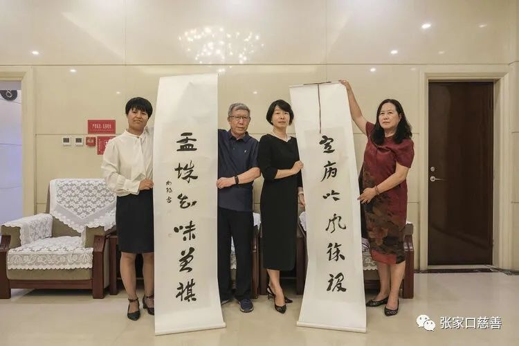 上谷文化研究会副会长侯向阳向高邮客人赠送了书法对联。