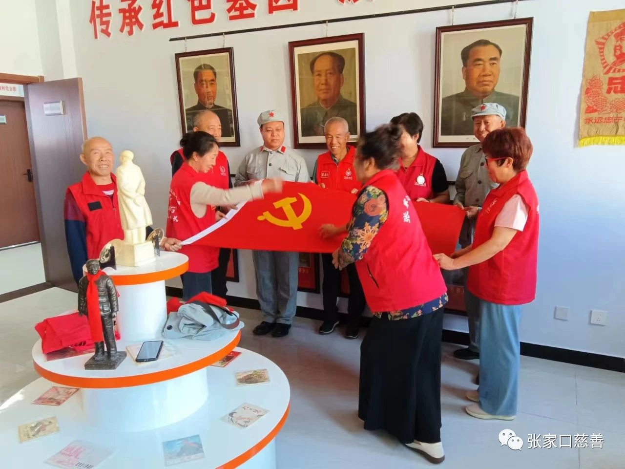 9月3日,是抗日战争胜利78周年纪念日,福德仁爱公益队党支部书记冀惠仁和队长毛艳芳同志,带领部分党员和队员,驱车到康保县张纪镇,参观了由福德仁爱公益队队员杨录同志创办的红色历史传统展览室。
