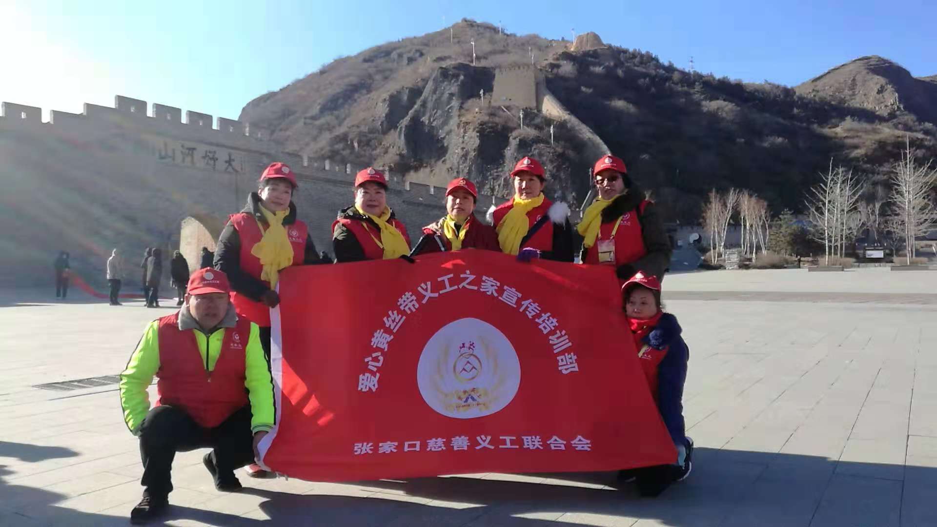 2018年12月11日上午,我们黄丝带志愿者之家的老师们在大境门景区参加"重温志愿者誓词"活动。今天尽管是寒风凛冽,但大家的热情丝毫不减。九点钟老师们从不同地方汇聚到大境门广场,空旷的广场上顿时热闹起来,小红帽、红马甲的身影整齐的排列在城墙下,共有六支分队,七十多名老师参加。宣传部王志宏部长带领在场的所有志愿者重温誓词: