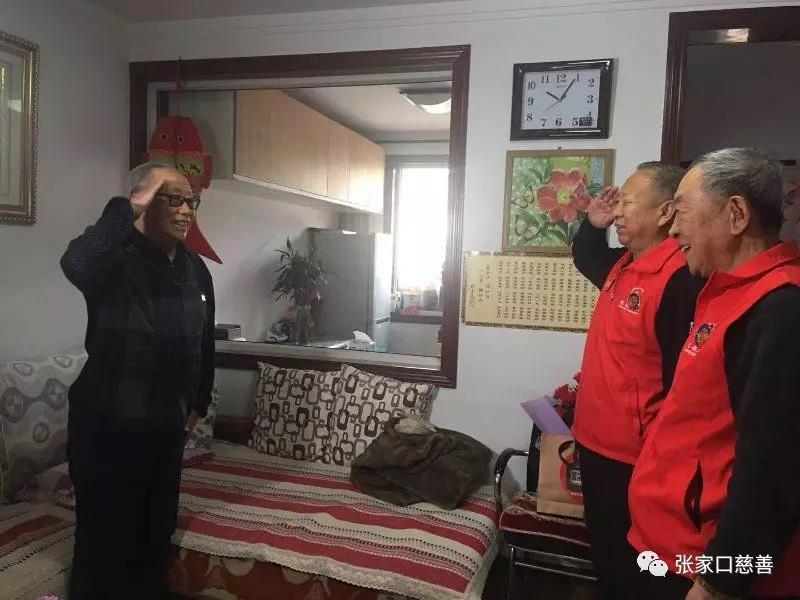 2018年12月20日,张家口慈善义工联合会阳光行关注历史团队名誉会长常久将军,冀桂宝书记,赵小军会长,志愿者李蓉萍、李国光、寇颐贤以及张家口电视台“张家口故事”栏目组蔡导等一行九人,来到了天宝北苑功勋老兵寇林的家里,共同慰问功勋老兵。同时也开启了团队记录老兵故事,传承老兵精神,第五十二站的慰问活动。