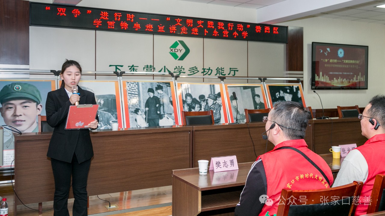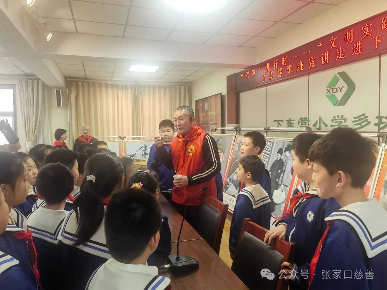 为全面贯彻爱国主义教育法,落实桥西区文明办“双争”活动部署要求,营造文明校园氛围,以培育和践行爱国主义价值观为根本,4月17日,桥东区慈善义工联合会雷锋精神志愿者服务队联合桥西区文明办走进桥西区下东营小学,为青年教师和少先队员讲解雷锋事迹,弘扬雷锋精神。
