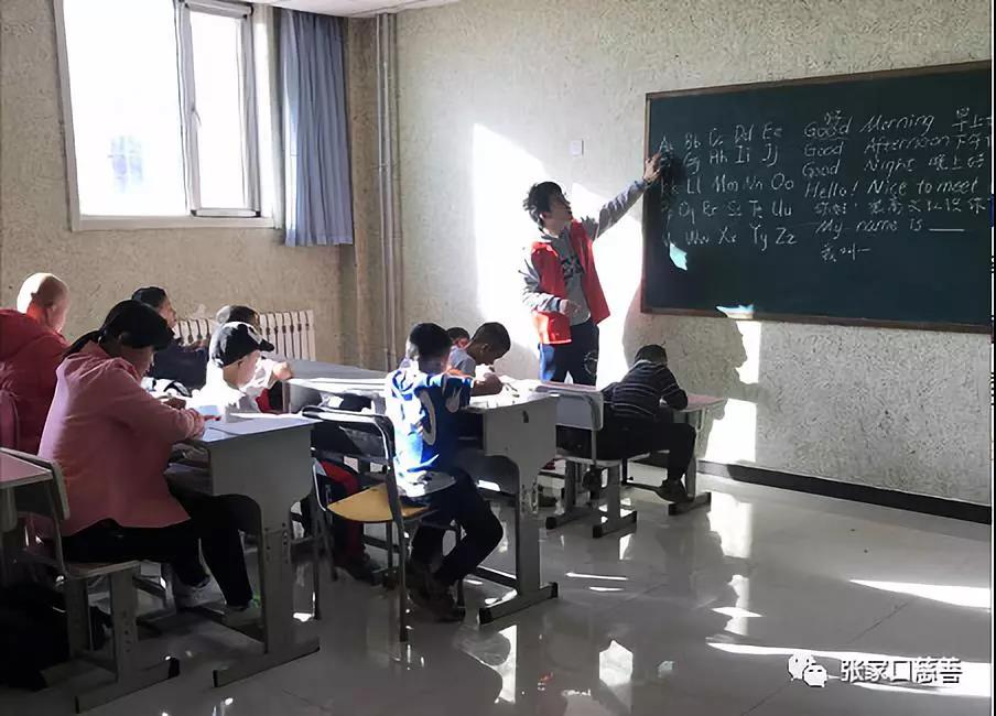 2019年1月21日,张家口市未成年人社会保护中心张垣博爱社会组织携手桥东区慈善义工联合会光之爱义工队、冬奥英语专业委员会、青少年发展专委会的爱心老师们来到福利院,为这些特殊的孩子补课。