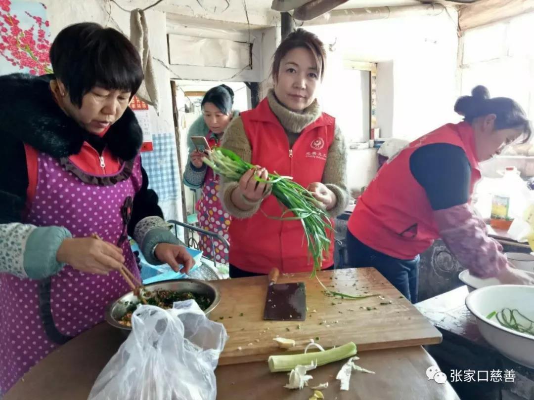 15日早上8点队友们早早的就来到了董大爷家,到了董大爷家看到家里的穷苦比想象的还要清贫。义工队友们给大爷洗衣服,檫柜子擦玻璃里里外外收拾的井井有条。义工队自己自发带来的肉、菜、面等等,开始包饺子。姐妹们洗菜的、剁肉馅的、和面的,齐心协力一会给大爷包了2大笼屉饺子。中午时风队友们把热气腾腾的饺子递在大爷手里。队友坐在大娘身旁一口一口的喂着吃。大娘不会说话但是含泪的眼角湿润了在场每个人的心!
