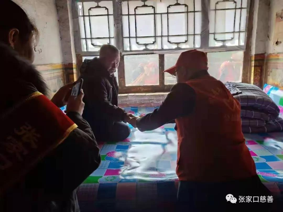 本次帮扶对象:王某丰,怀来县王家楼乡,王家楼村人,回族,65岁无儿无女,患有小脑萎缩,癫痫,常年靠药物维持。和弟弟相依为命,弟弟娶妻生子后,弟媳因家庭条件窘迫,抛夫弃子离家,弟弟一人承担照顾王永丰及抚养孩子的家庭重担。因王永丰生活不能自理,其弟只能在家务农收入微薄,现在迫于生计实在无能为力照顾生病的哥哥,虽然享有国家低保政策,但是面对常年高昂的医药费及全家人的生活开销,还是杯水车薪。在了解到情况后,张家口市桥东慈善义工联合会同心携手为爱传递义工队志愿者自发组织为王永丰家里送去大米5袋(20斤)、花生油4桶(10斤)、白面5袋(20斤)、方便面4箱、桃酥2件、挂面一包、旧衣服俩包、被子、褥子、炕布等,真正将温暖送到贫困家庭,并帮助打扫卫生、铺床垫、套被罩,现场捐赠现金2000元,王老先生感动的热泪盈眶,拉住志愿者的手久久不放,老人用朴实的话语表达自己的感激之心。