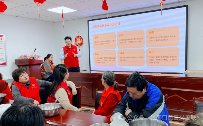 下午2点,活动以健康科普讲座开场。张家口经开区残疾人专门协会志愿队队长王璐,通过PPT演示与情景模拟,为大家深入浅出地讲解了癫痫发作时的 “侧卧保护、清理环境、计时观察” 三步急救法,纠正了“塞硬物”“按压肢体”等常见误区,并解读了精神残疾分类、康复政策及与精神残疾人士的相处礼仪。居民郭女士表示,掌握科学方法后,遇到类似情况更有底气了。