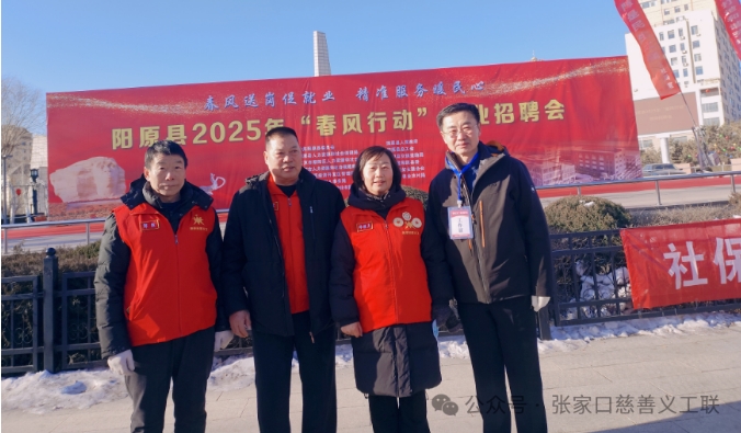 2025 年 2 月 12 日,在阳原县泥河湾广场,一场意义非凡的就业招聘宣传活动隆重举行。阳原慈善义工联合会春风送暖爱心队,在接到通知后,20多名志愿者积极响应,投身到这场关乎民生的活动中,用实际行动传递温暖,助力就业。