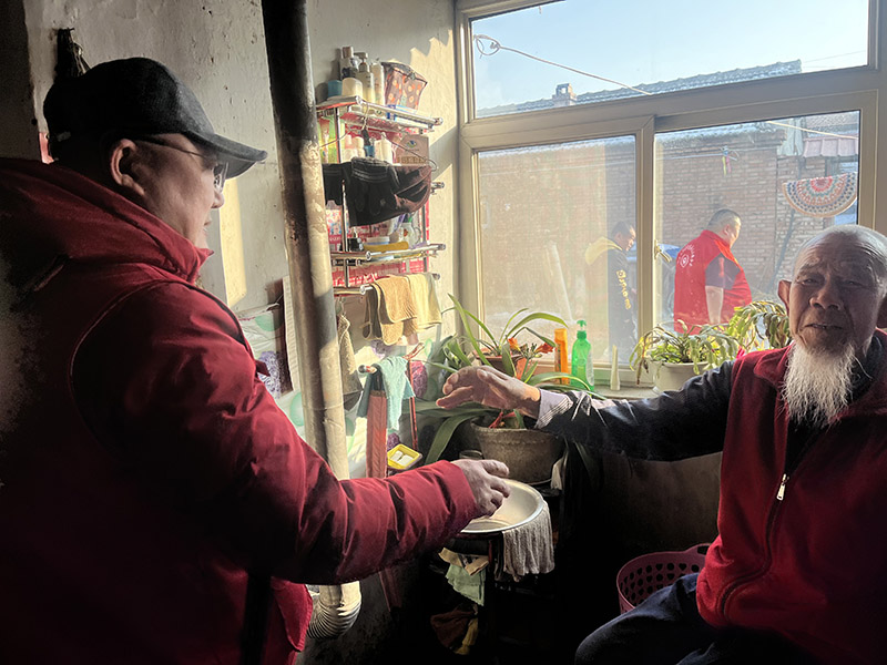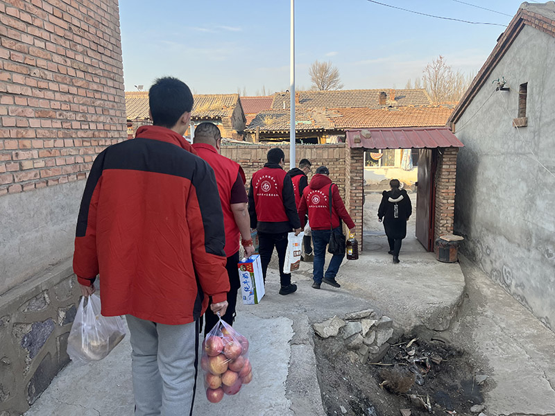 2024年1月16 日下午二时许,张家口市宣化慈善义工联合会联合南大街街道指南针志愿服务队的志愿者们关爱老弱病残人,暖冬行动走进贾家营村。