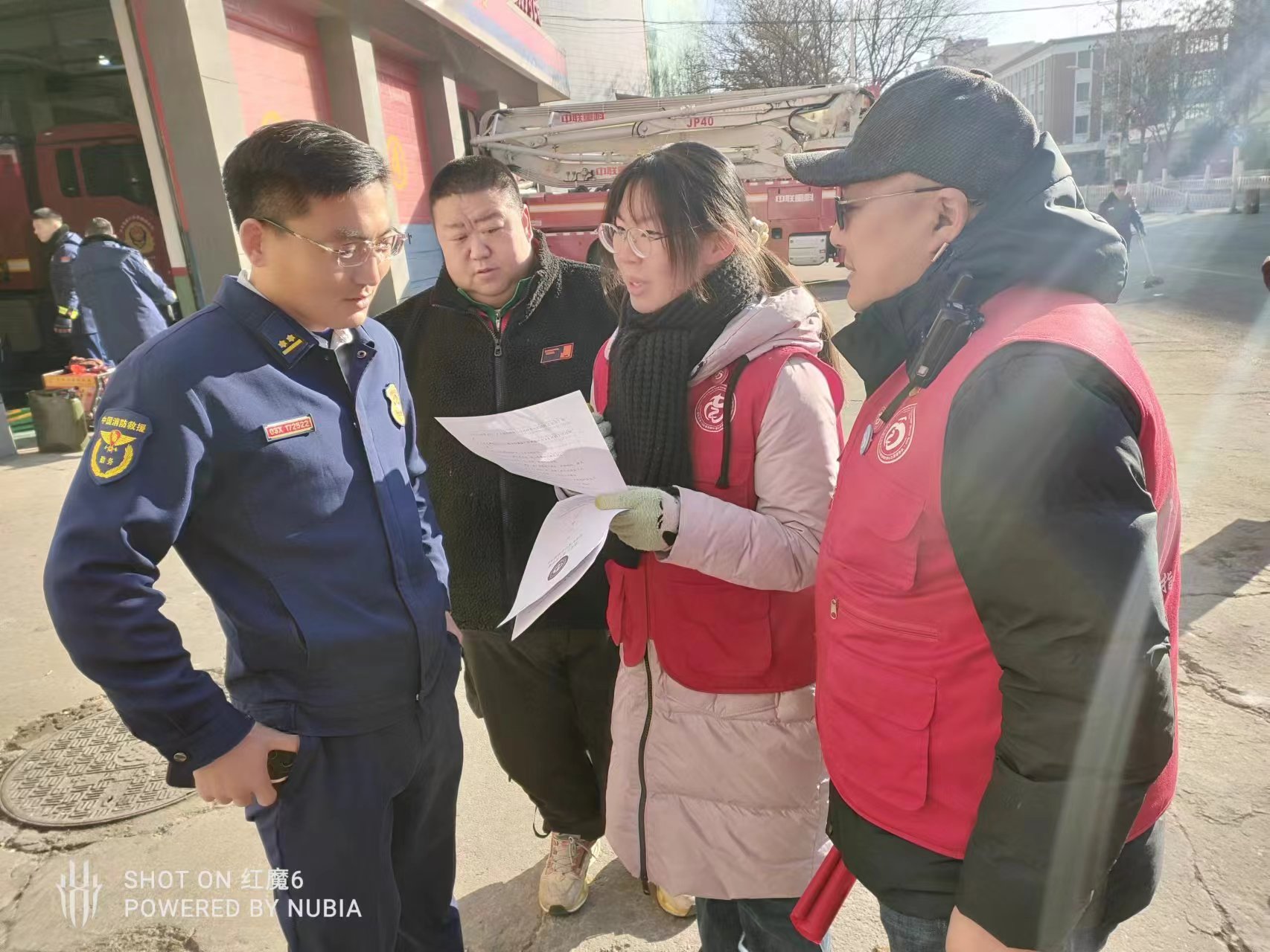 2024年1月26日上午10时许,张家口市宣化慈善义工联合会联合南大街指南针志愿服务队在宣化区消防救援大队门口举办消防宣传先行动,平安百色迎“两会”“两节”消防宣传活动。
