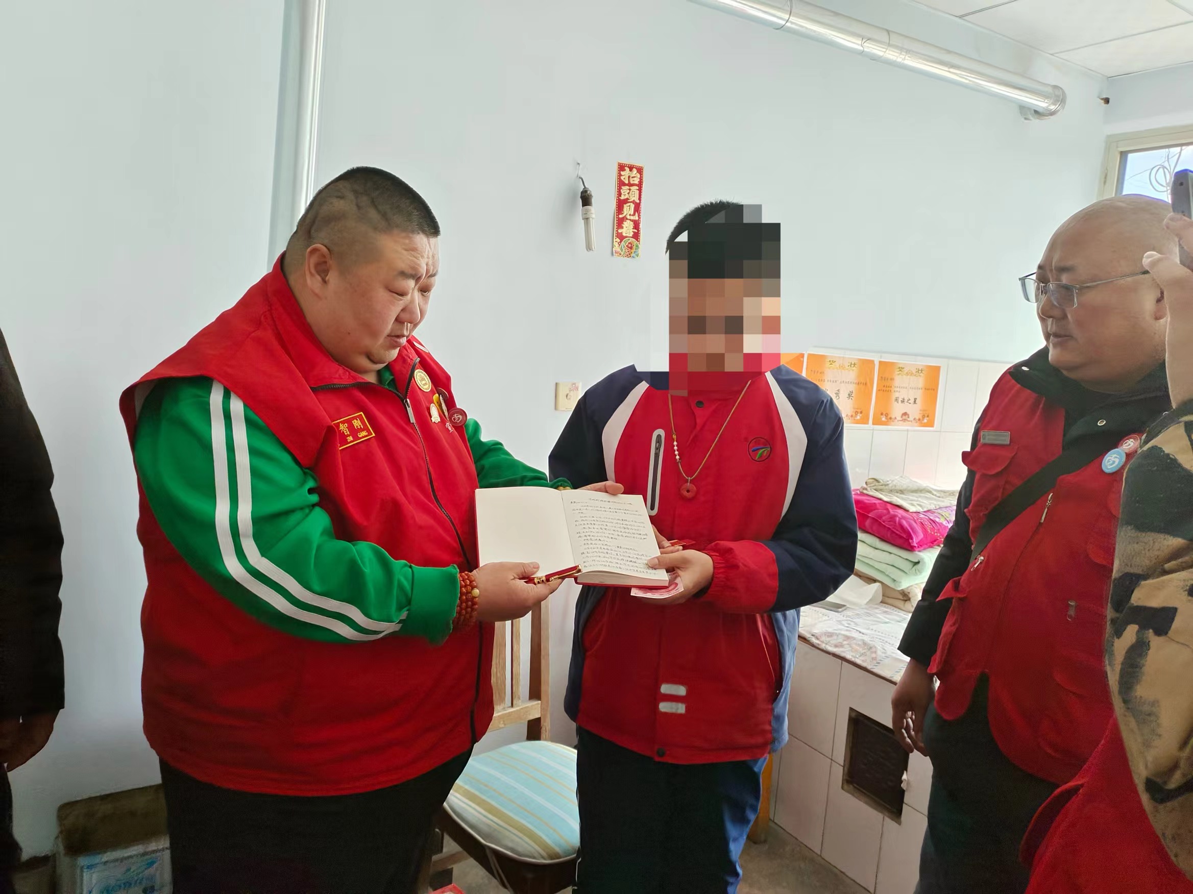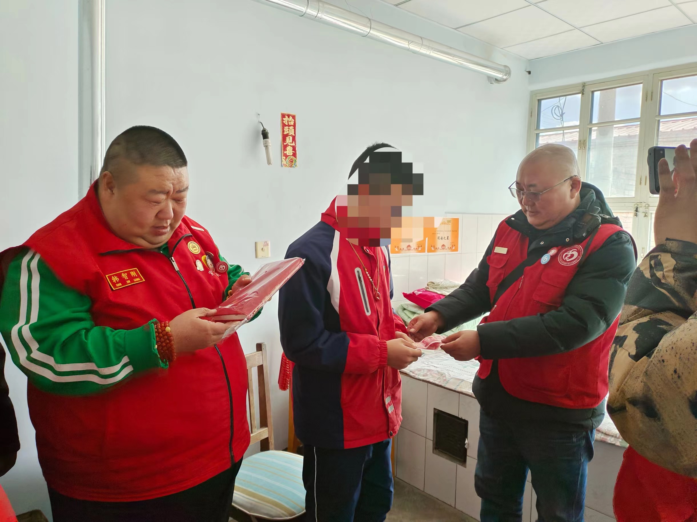 2024年3月7日上午,宣化慈善义工联合会通讯部部长兼宣科院志愿服务队队长韩智刚及南大街街道指南针爱心志愿服务队负责人赵忠等志愿者一行三人,不畏严寒,驾车来到张家口市阳原县西城镇平安西街,为刘苗涛送去“代理爸妈”助学金850元以及米面、水果、笔记本等生活用品,让生活贫困的刘苗涛在开学之际得到“代理爸妈”助学金的资助。