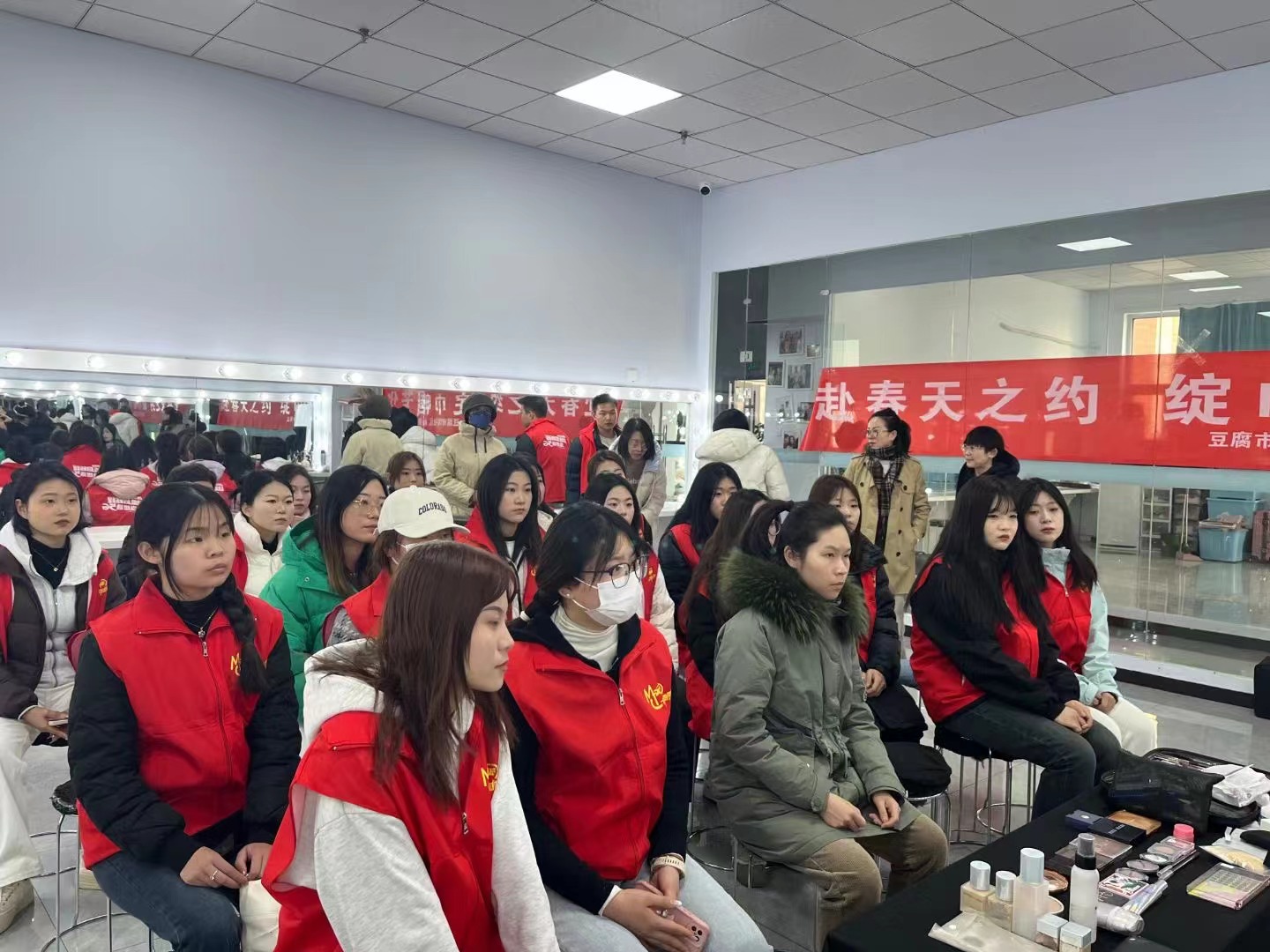 特邀专业化妆师来社区做妆容培训,全体青年志愿者及豆腐市街社区工作者参加活动。让女性在“变美”的过程中感受到温馨、浪漫的节日氛围,增强女性的自信心和愉悦感。