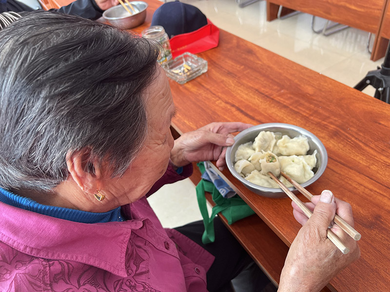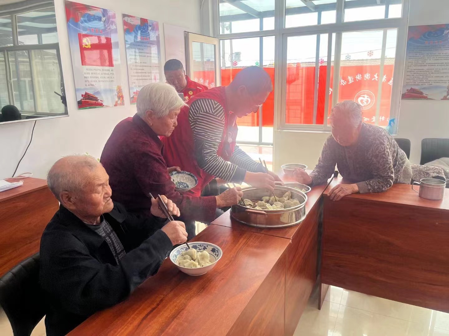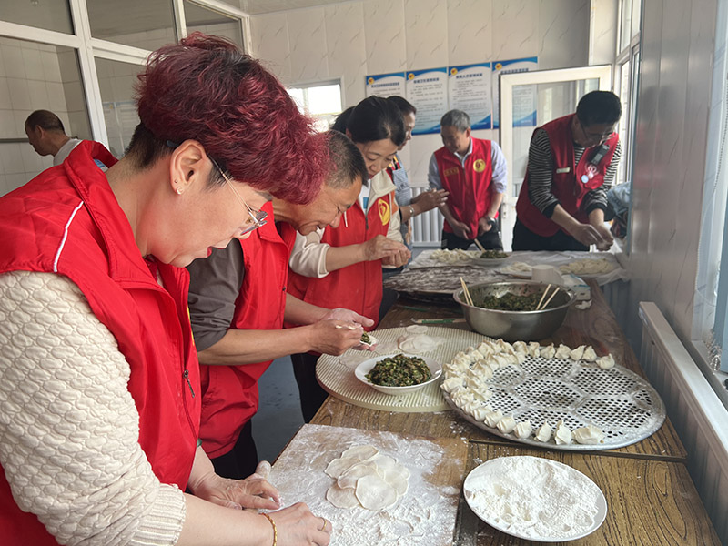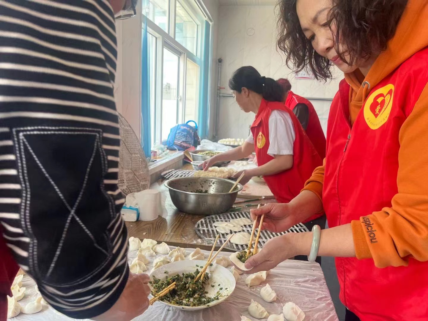 饺子宴这天,村委会领导、志愿者们等齐上阵,大家相互配合、分工协作,一边和面擀皮包饺子,一边聊着家常,耐心倾听老人们分享的故事,拉近与老年人的距离。