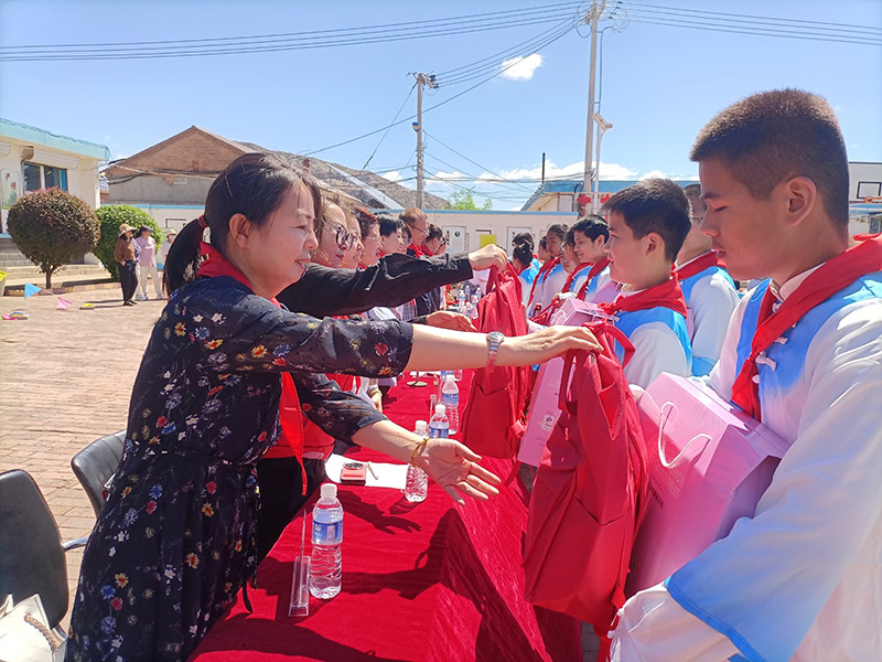 慰问组一行为下葛峪半寄宿制小学的孩子们捐赠了学习用品、夏凉被、雨伞、节日小蛋糕等物品,并向学校食堂捐赠了新鲜蔬菜和鸡蛋。