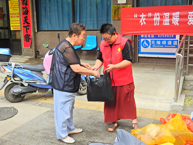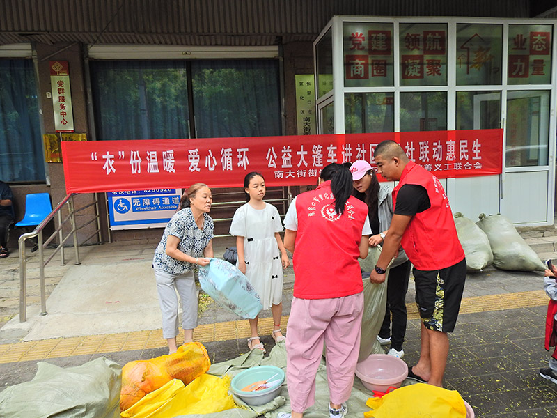 居民们纷纷拿着家中的不穿的衣服前来捐赠,同时也会依照捐赠的数量获得相应的印有公益大篷车字样的小礼物。活动现场热闹而有序,居民们对这样的活动表示支持,还要求经常开展。志愿者们耐心的解答居民提出的问题,同时社区工作人员和志愿者们现场为居民宣传防疫和反诈知识等。
