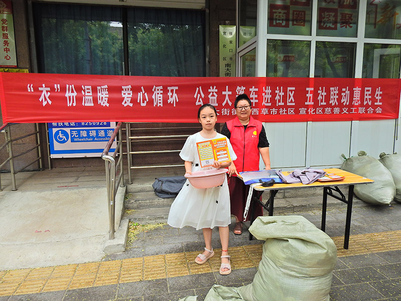7月15日上午8时许,宣化慈善义工联合会携手西草市社区开展了五社联动,“公益大篷车”进社区活动,这是宣化工作站今年的第七站服务。