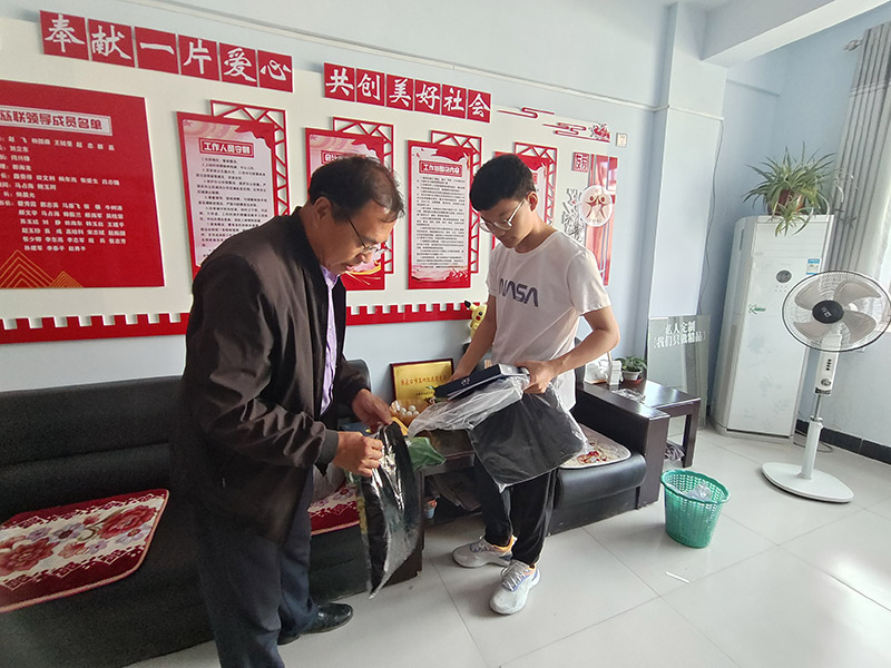 当刘苗权父子踏入办公室的那一刻,温暖的气息扑面而来。翟姐热情地迎接他们,向他们讲述了宣化慈善义工联合会韩智刚队长的善举。刘苗权父子静静地聆听着,眼中闪烁着感动的泪花。他们小心翼翼地接过慰问品,那不仅仅是一份物质的馈赠,更是一份沉甸甸的关爱与期望。