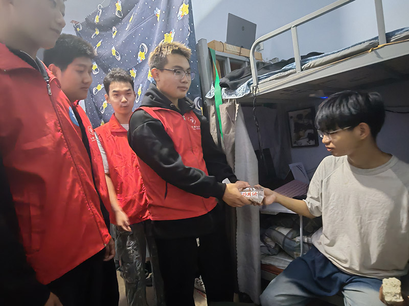 随后,韩智刚队长和陈英聪副队长将月饼一一发放到志愿者们的手中。志愿者们接过月饼,脸上露出了幸福的笑容。他们纷纷表示,这份礼物让他们感受到了团队的温暖和关爱,也让他们更加坚定了继续从事志愿服务的决心。
